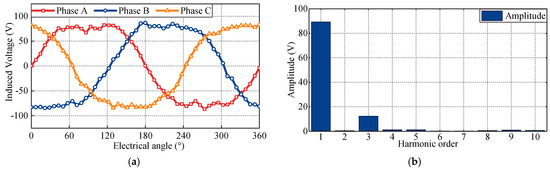 Under the rated operating condition, the no-load back-EMF waveform of AFEESM and its harmonic analysis are shown in Figure 9.