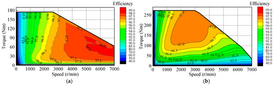 Efficiency maps of the two motors: (a) AFEESM; (b) AFPMSM.