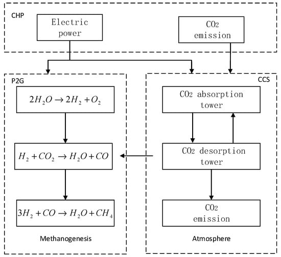 To enhance the economic efficiency and operational flexibility of IES scheduling within industrial parks, this paper proposes a CHP of P2G and CCS modes and constructs a CCP joint operation model. The operating mechanism of the CCP is shown in