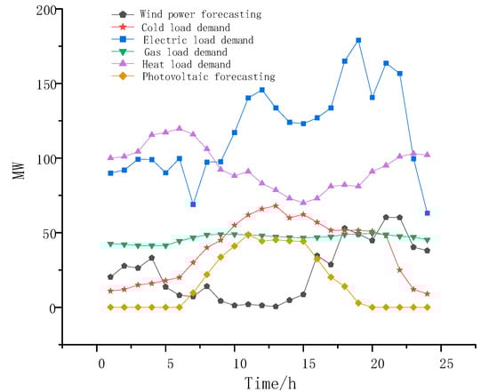 To verify the effect of the reward and punishment stepped carbon trading mechanism and the CCP joint operation model proposed on the economy and carbon emission reduction of industrial parks, the verification is conducted for one scheduling cycle. The load forecast output of the system is shown in