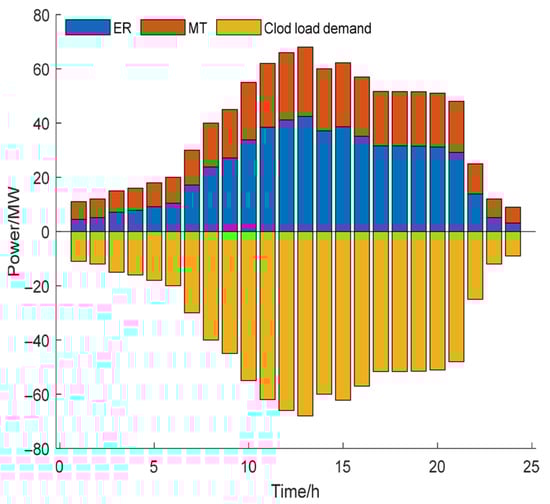 represents the gas consumption power of the MT, in MW; , , and are the power conversion coefficients of electricity, heat, and cold, respectively, and represents the heat power of the MT, in MW. is the cooling power of the MT, in MW; and is the minimum output power of the MT and is the maximum output power, in MW. and illustrate the highest and lowest climbing speeds achieved by the MT, respectively, in MW.