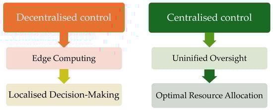 The management and optimisation techniques relevant to smart charging strategies for EVs are critical in ensuring the efficiency and reliability of power systems, especially with the increasing penetration of renewable energy [58,59,60]. This exploration delves into smart charging strategies, scheduling and load forecasting utilising ML and DL, EMSs, multi-objective optimisation approaches, and comparisons between decentralised and centralised control structures, particularly focusing on edge computing and the Internet of Things (IoT), as shown in Table 1.