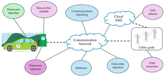 - Cybersecurity vulnerabilities: As EV-grid architectures gain connectivity, they become susceptible to cyber–physical threats, including communication interception, malware injection, and denial-of-service attacks. Research indicates that even smart-charging stations and V2G systems may harbour critical security flaws [9,10,11,12].
