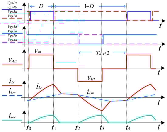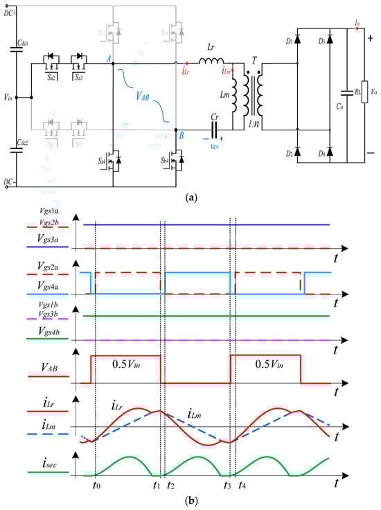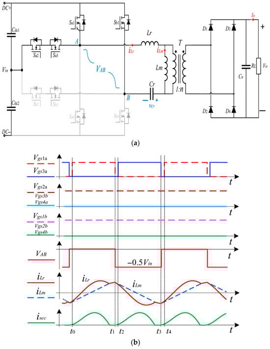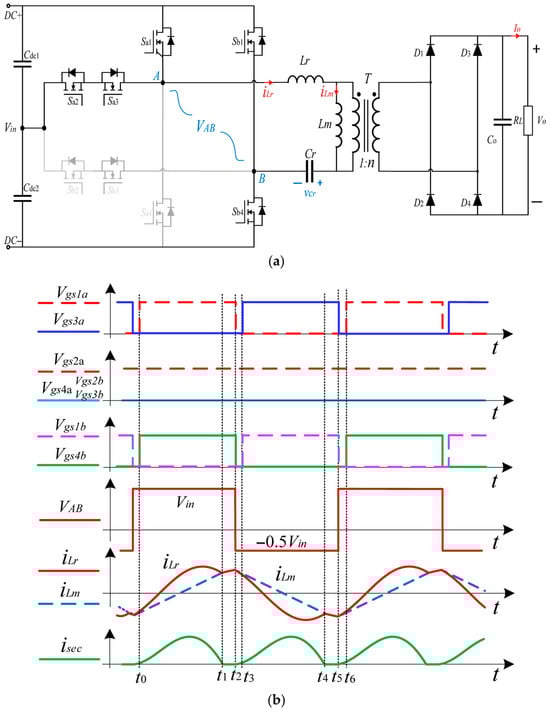 2.1. Operating Principle of the Full-Bridge T-Type Three-Level LLC Converter