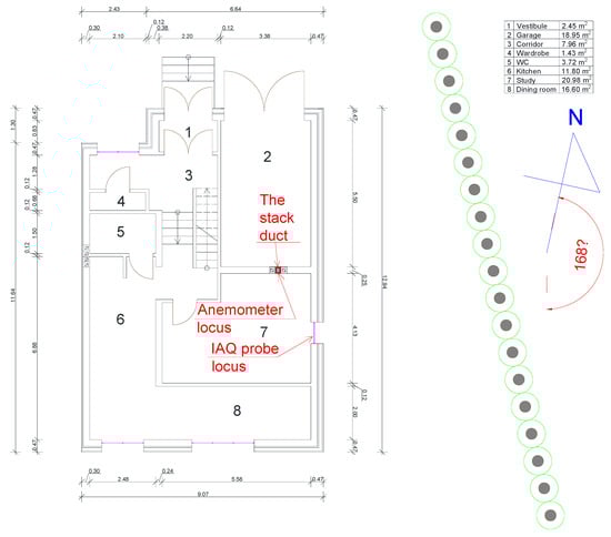The measurements were conducted in a one-person workroom of a two-storey semi-detached house located in Białystok (Poland) in the IV climatic zone; the house has a simple cubic shape; the workroom is placed on the ground floor; and the measurements were performed for 12 months in the years 2022–2023; eventually, 10 seven-day measurement series were taken.