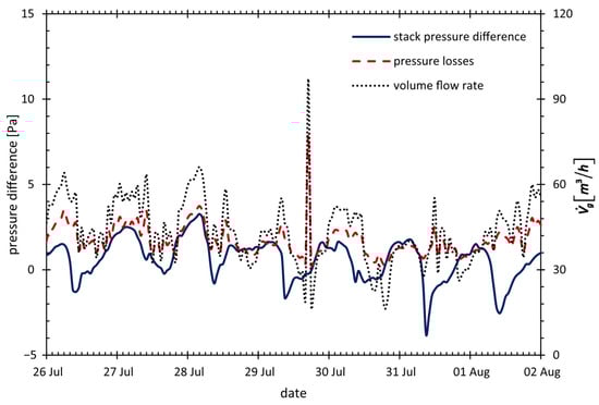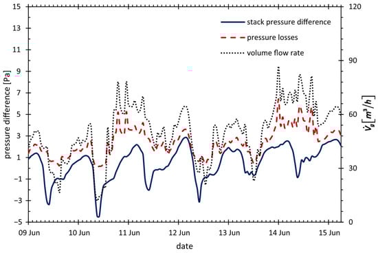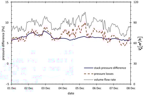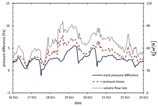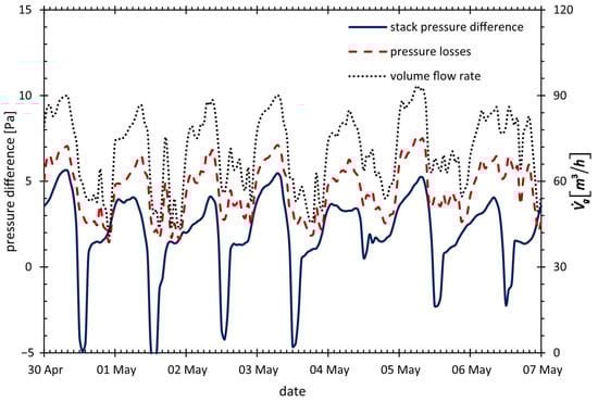 The stack effect depends on outdoor thermal conditions and is strongly affected by the speed and direction of the wind; the wind effect is random, and its prediction is difficult; it may increase the air flow rate in relation to the stack effect [14]. However, other measurements lead to opposite conclusions [15]; stack ventilation may operate even when the temperature difference is less than 12 °C.