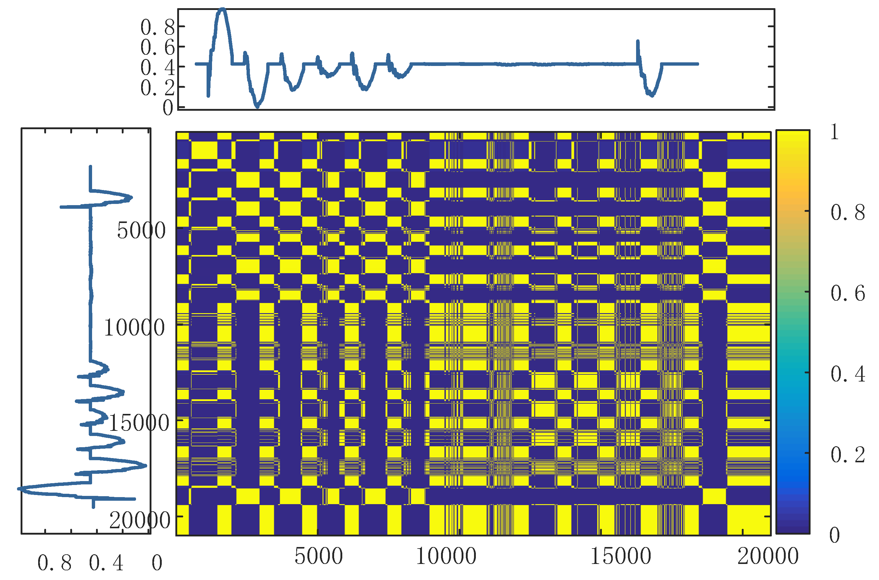 This matrix can be interpreted as a compressed representation of evolutionary trends in the state space, characterizing the global dynamic properties of the system. By mapping the state transition probabilities in the transition matrix onto the time point pairs of the original time series, a Markov Transition Field matrix M T × T is formed: