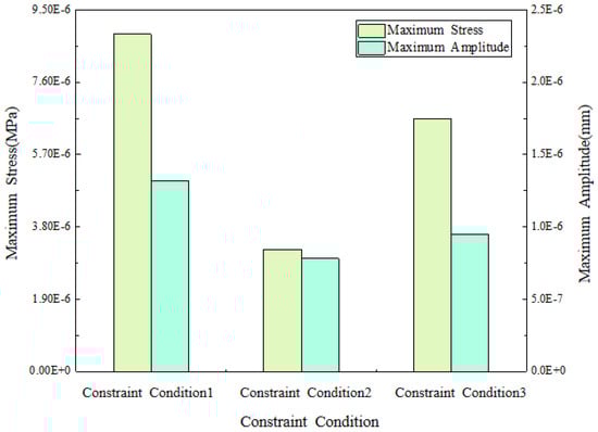 Maximum stress and maximum amplitude changing with constraint conditions.
