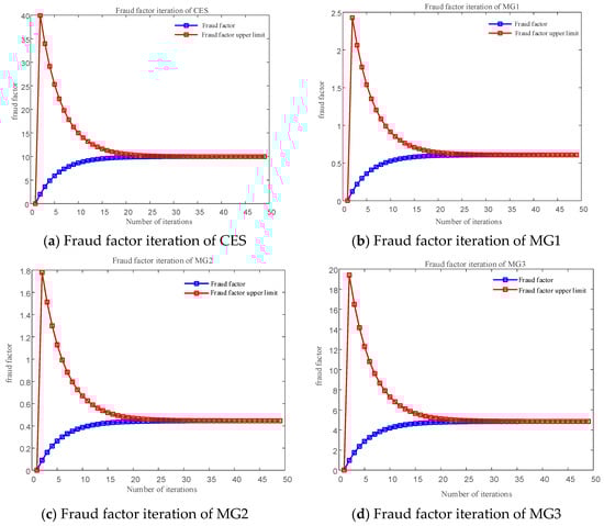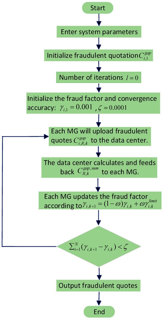 - Initialize the deceptive quotation for each MG, set the iteration count to k = 1, the deception factor to , and the convergence precision .