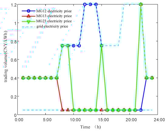 - Solve the distributed optimization operation model for MG3. From MG1, receive the expected trading price from MG1 to MG3; from MG2, receive the expected trading price from MG2 to MG3. Obtain the expected trading prices from MG3 to MG1 and from MG3 to MG2.