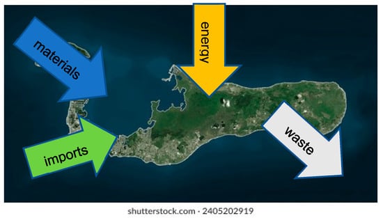 Schematic representation of a human society as a thermodynamic system in an input/output perspective.