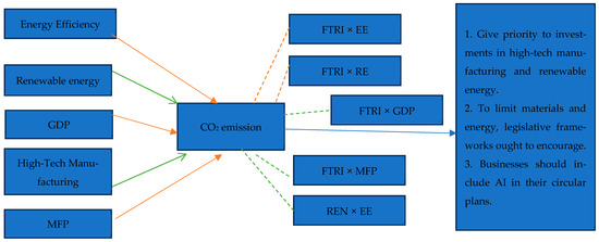 The inverse relationship between FTRI, MFP, and CO2 emissions shows how technology-driven innovation may support circular business models that reduce waste and material consumption. AI, for instance, may help with recycling, remanufacturing, and product life extension by forecasting demand and streamlining operations. To improve sustainability and competitiveness, businesses should investigate how to include technology-driven innovation in their circular plans.