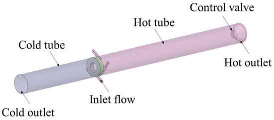 As shown in Figure 1, the length of the hot tube and cold tube are 210 and 106 mm, respectively. The inner diameter of hot tube and cold tube is 21 mm. The thickness of separation orifice plate is 5 mm. The central aperture is 10.6 mm. The width of ring gap at hot outlet is 1.4 mm.