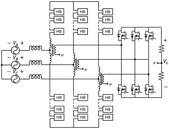 - Andrioli, G.; Calligaro, S.; Petrella, R.; Kolar, J.W.; Huber, J. Analysis and Comparative Evaluation of a Modularized Bridge Rectifier MVAC-LVDC Solid-State Transformer. In Proceedings of the 2024 IEEE 10th International Power Electronics and Motion Control Conference (IPEMC2024-ECCE Asia), Chengdu, China, 17 May 2024; IEEE: Piscataway, NJ, USA, 2024; pp. 2722–2729. [Google Scholar]