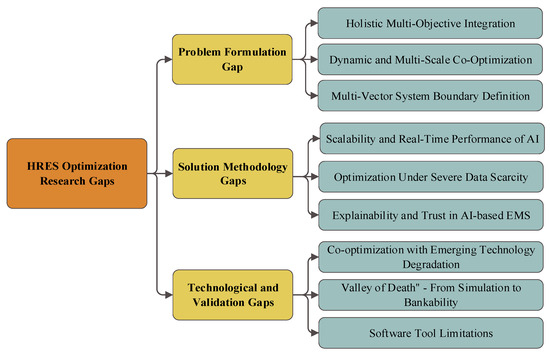 The global drive towards net-zero emissions, coupled with the need to ensure reliable and affordable energy supply, has placed HRES at the forefront of energy system innovation. This study is motivated by the necessity to consolidate the rapidly expanding body of knowledge, identify persistent challenges, and provide guidance for developing next-generation optimization frameworks. The urgency to decarbonize requires solutions that can handle diverse, uncertain operating conditions and integrate emerging technologies. However, the increasing penetration of VRE sources demands optimization methods capable of managing not only technical and economic trade-offs but also the profound systemic risks related to grid stability, energy storage deficits, and geopolitical vulnerabilities. This review aims to explicitly map these deficiencies and propose targeted research directions to close them.