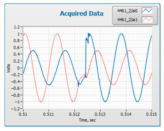 NI PXI-4462. The transient state due to switching is visible between 0.512 s and 0.513 s.