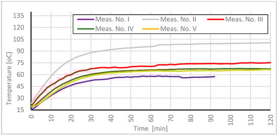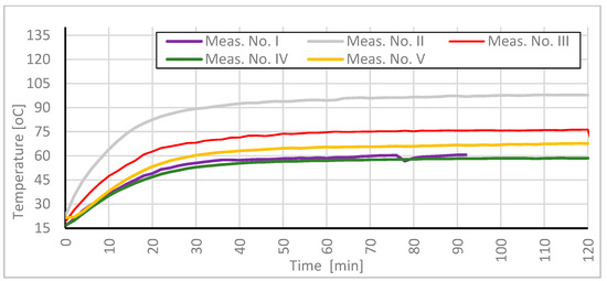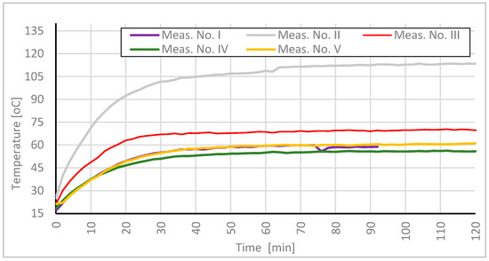 The maximum temperatures recorded during the measurement are presented in Figure 5.