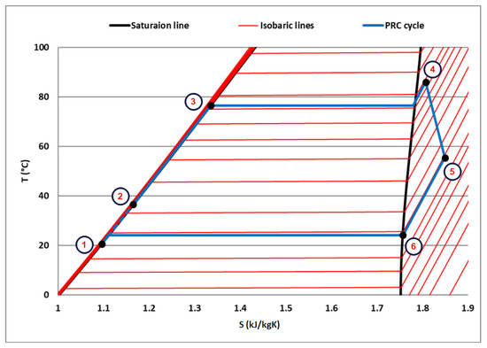 T-s diagram of the examined PRC cycle.