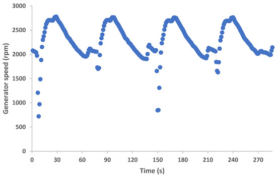 Generator speed variation for thwin = 90 °C, tcwin = 10 °C.