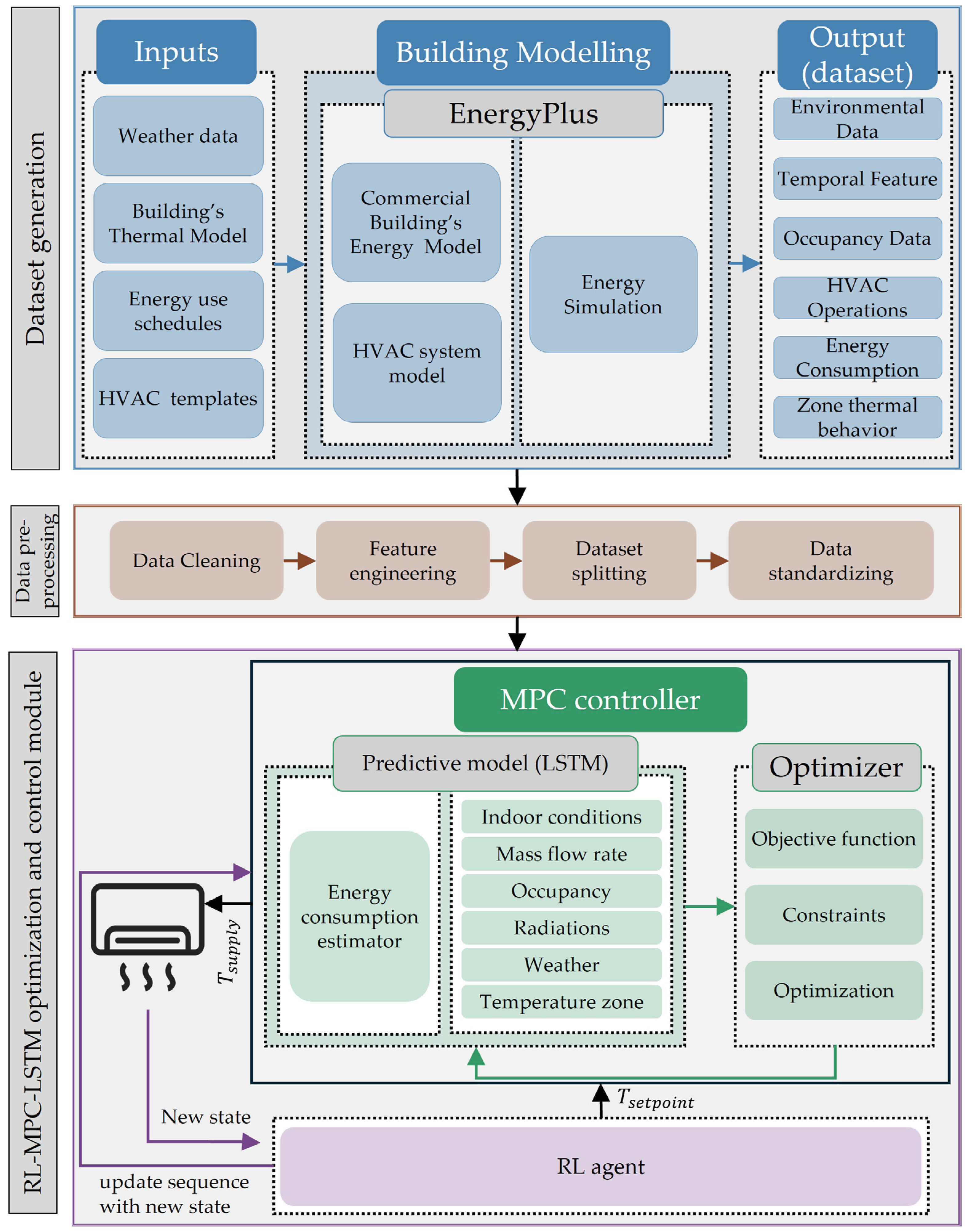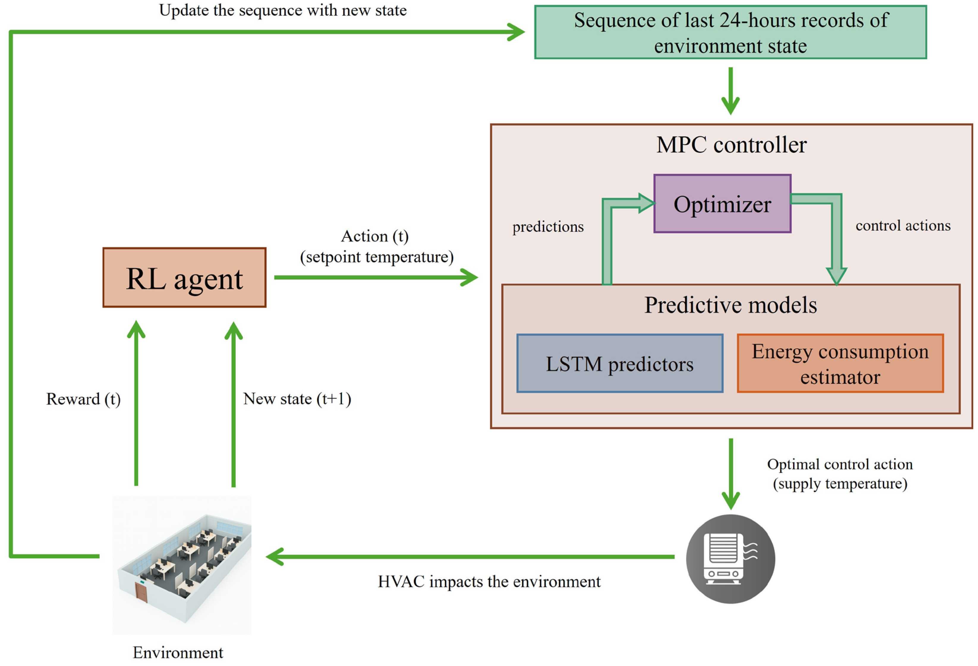 Azzi A, Abid M, Hanif A, Bensag H, Tabaa M, Hachimi H, Youssfi M. A Hybrid Control Strategy Combining Reinforcement Learning and MPC-LSTM for Energy Management in Building. Energies. 2025; 18(17):4783. https://doi.org/10.3390/en18174783
