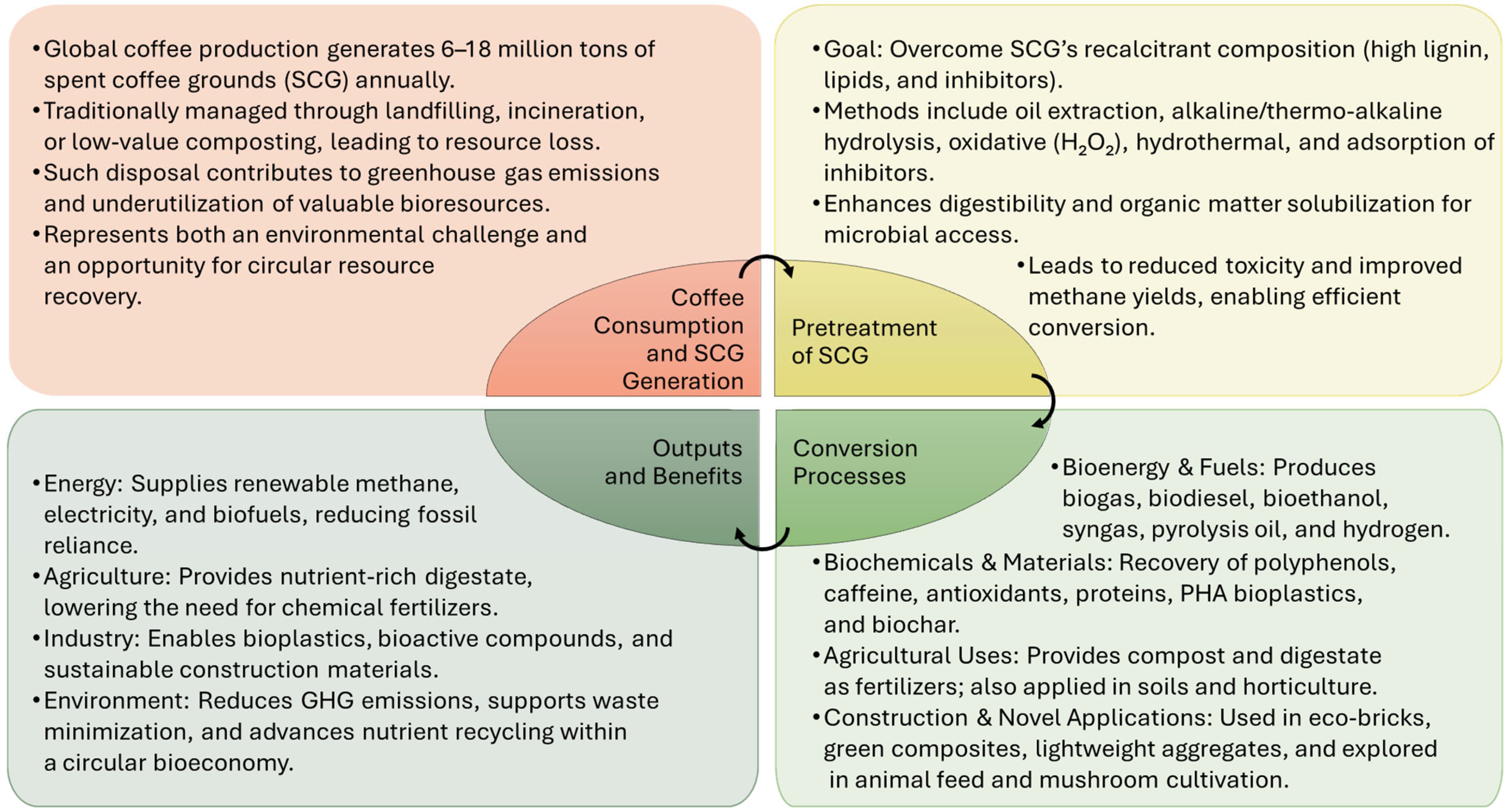 - Ahmed, H.; Abolore, R.S.; Jaiswal, S.; Jaiswal, A.K. Toward Circular Economy: Potentials of Spent Coffee Grounds in Bioproducts and Chemical Production. Biomass 2024, 4, 286–312. [Google Scholar] [CrossRef]