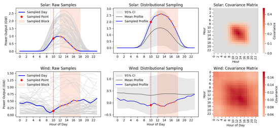 Some regions have introduced differentiated dispatch assumptions to improve realism. ISO-NE varies solar output based on load level and time of day, while PJM implements “block dispatch” using historical capacity factors to assign static outputs by location [4,5]. These methods improve scenario coverage but remain deterministic and do not capture the range or likelihood of operational outcomes. Several studies highlight the value of probabilistic and scenario-based representations of DER variability, moving beyond static assumptions [11,13,14].