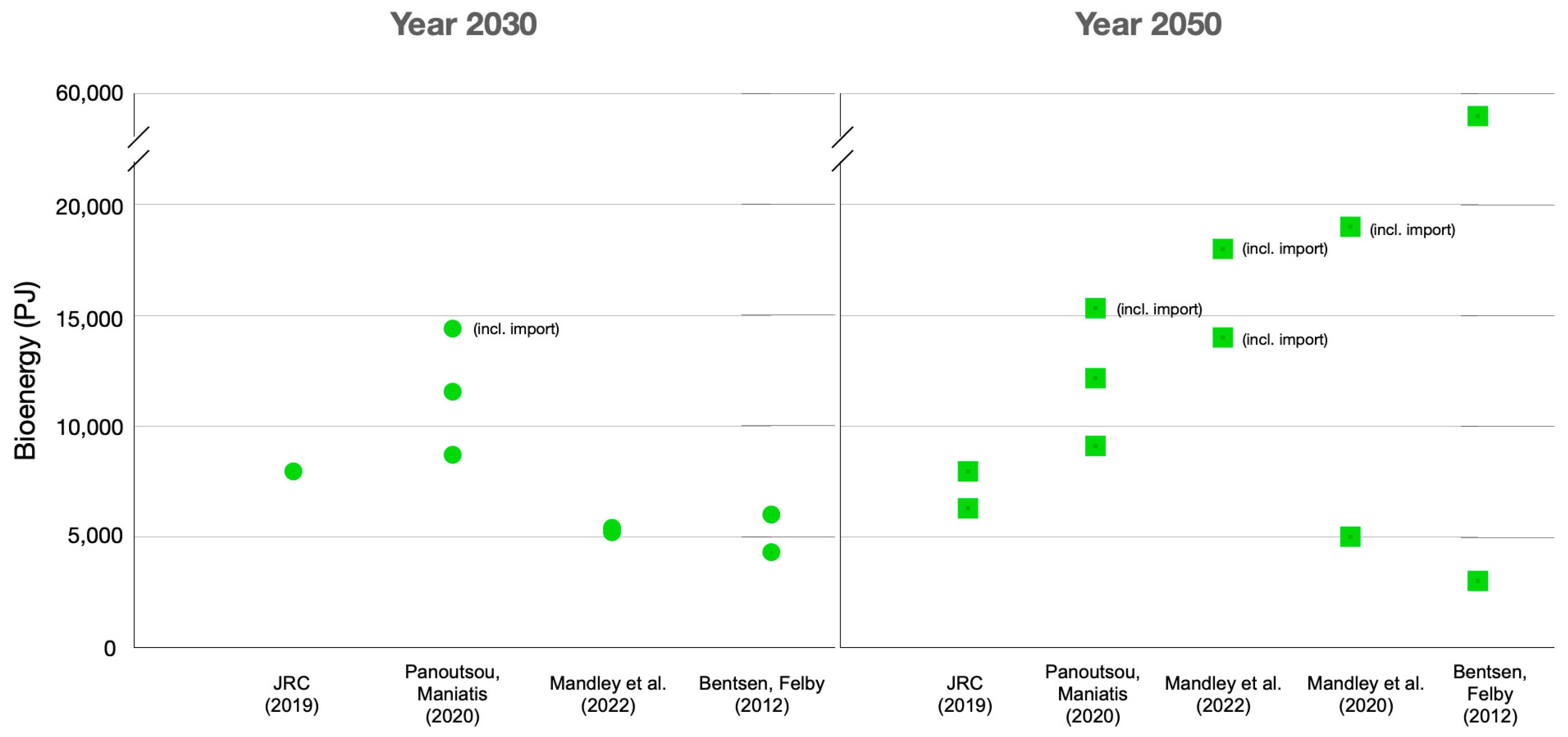 - Mandley, S.J.; Wicke, B.; Junginger, H.; van Vuuren, D.; Daioglou, V. Integrated assessment of the role of bioenergy within the EU energy transition targets to 2050. GCB Bioenergy 2022, 14, 157–172. [Google Scholar] [CrossRef]