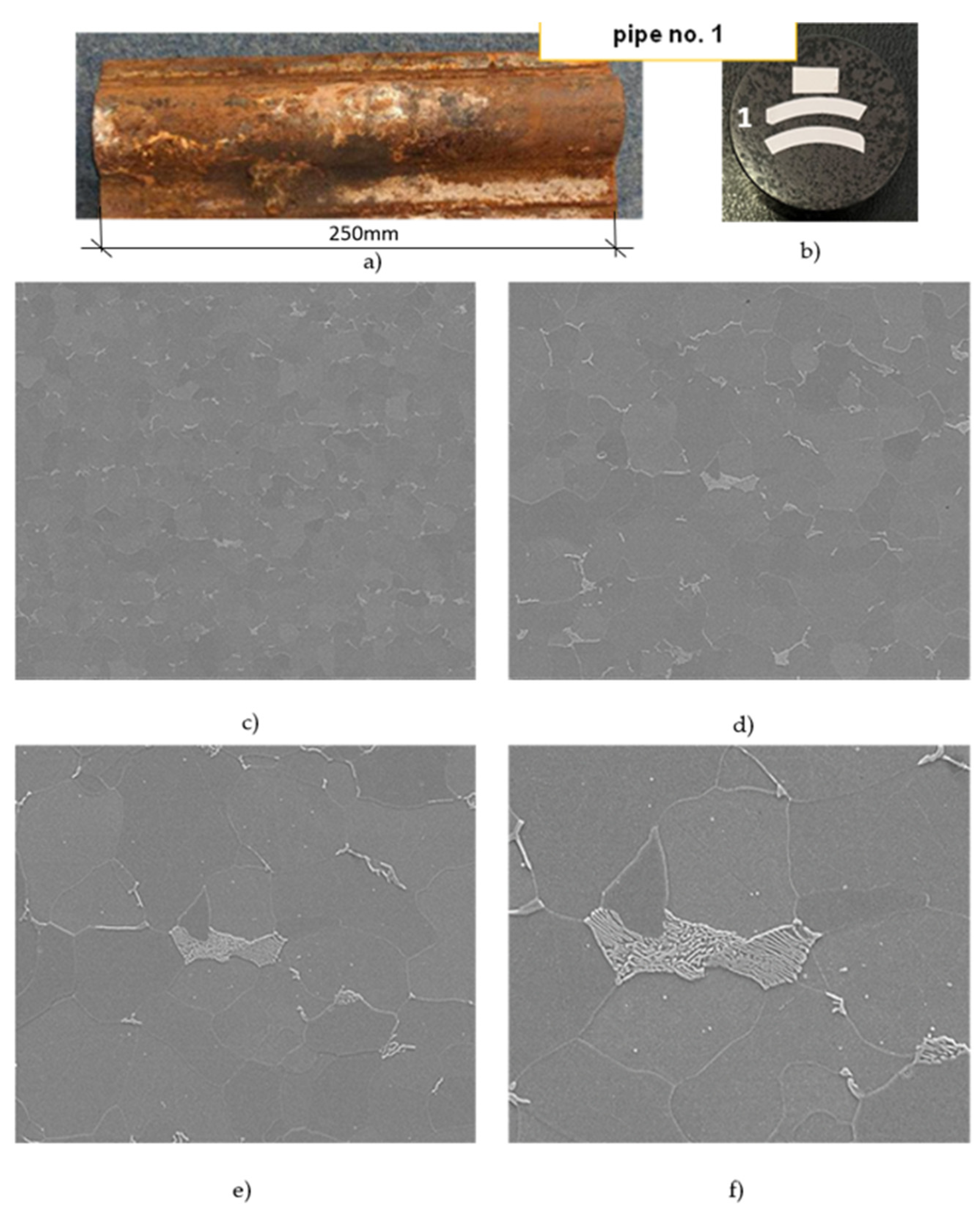 Figure 5b). The specimens are prepared on transverse and longitudinal sections of the tube segments by grinding with abrasive papers and mechanical polishing using diamond pastes. Chemical etching is performed in a 4% alcoholic solution of nitric acid.