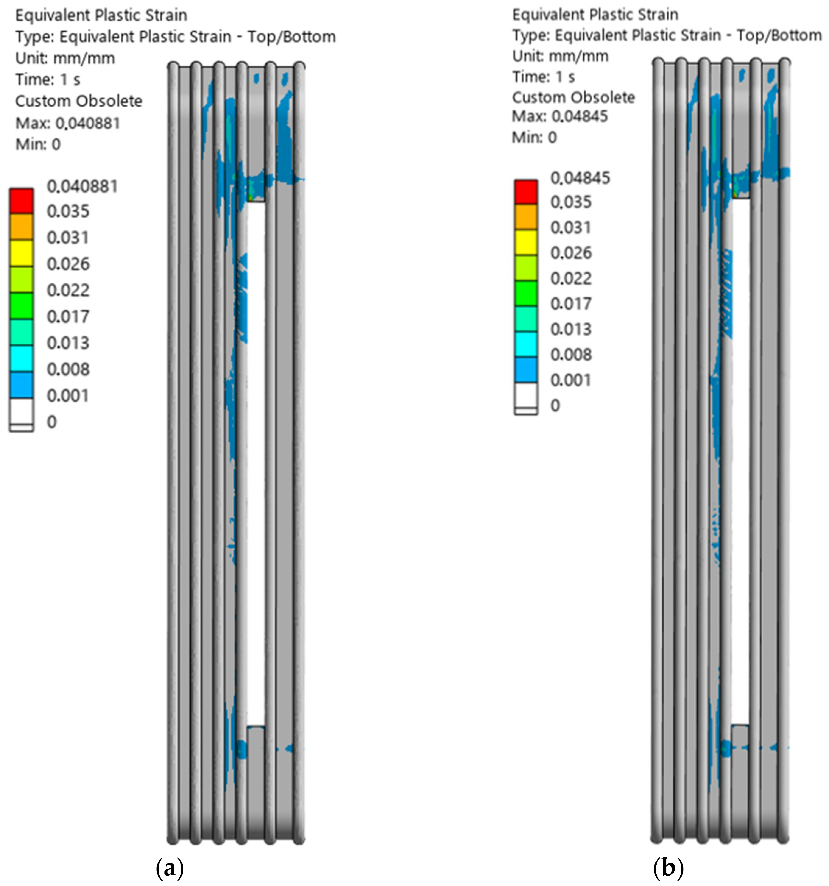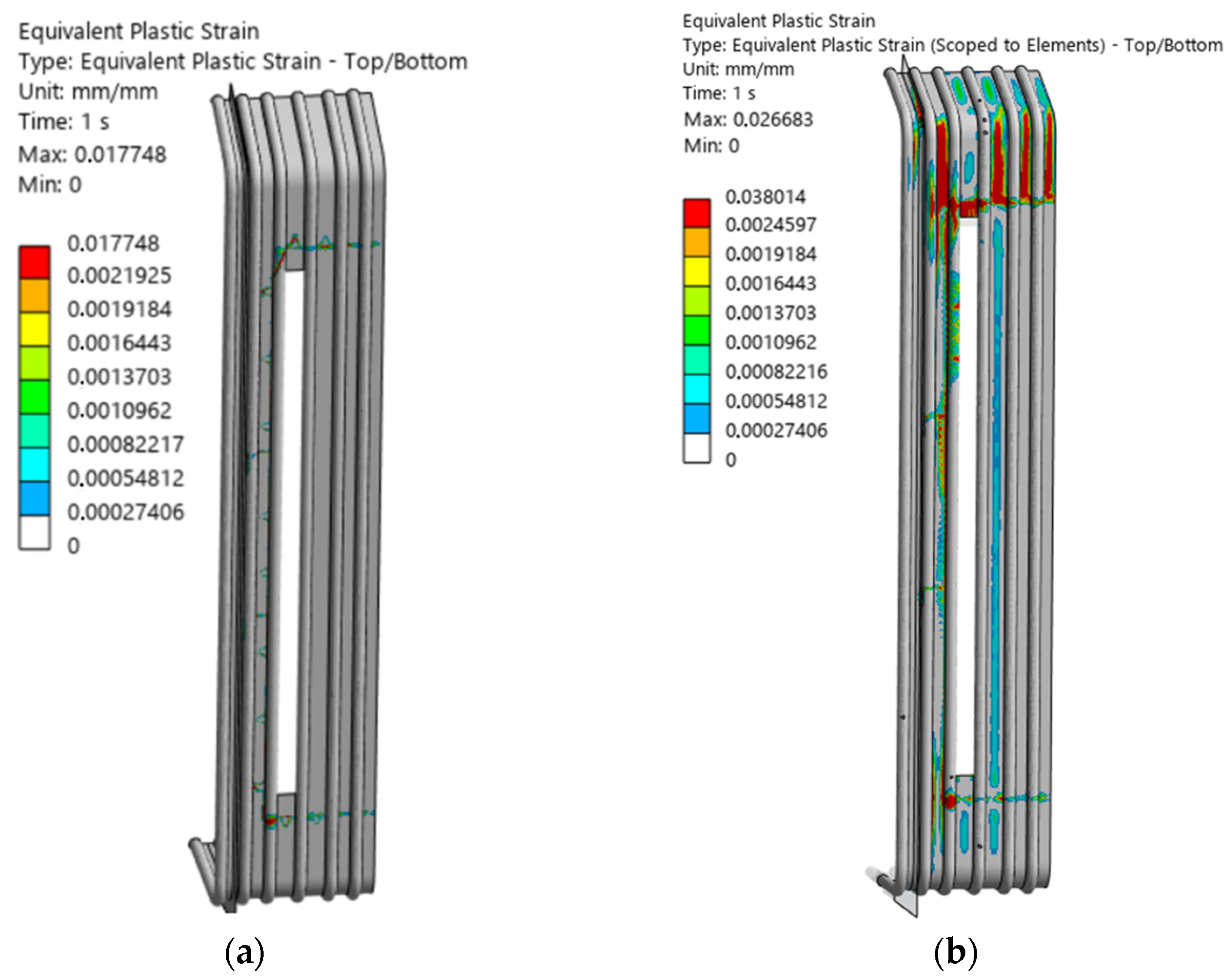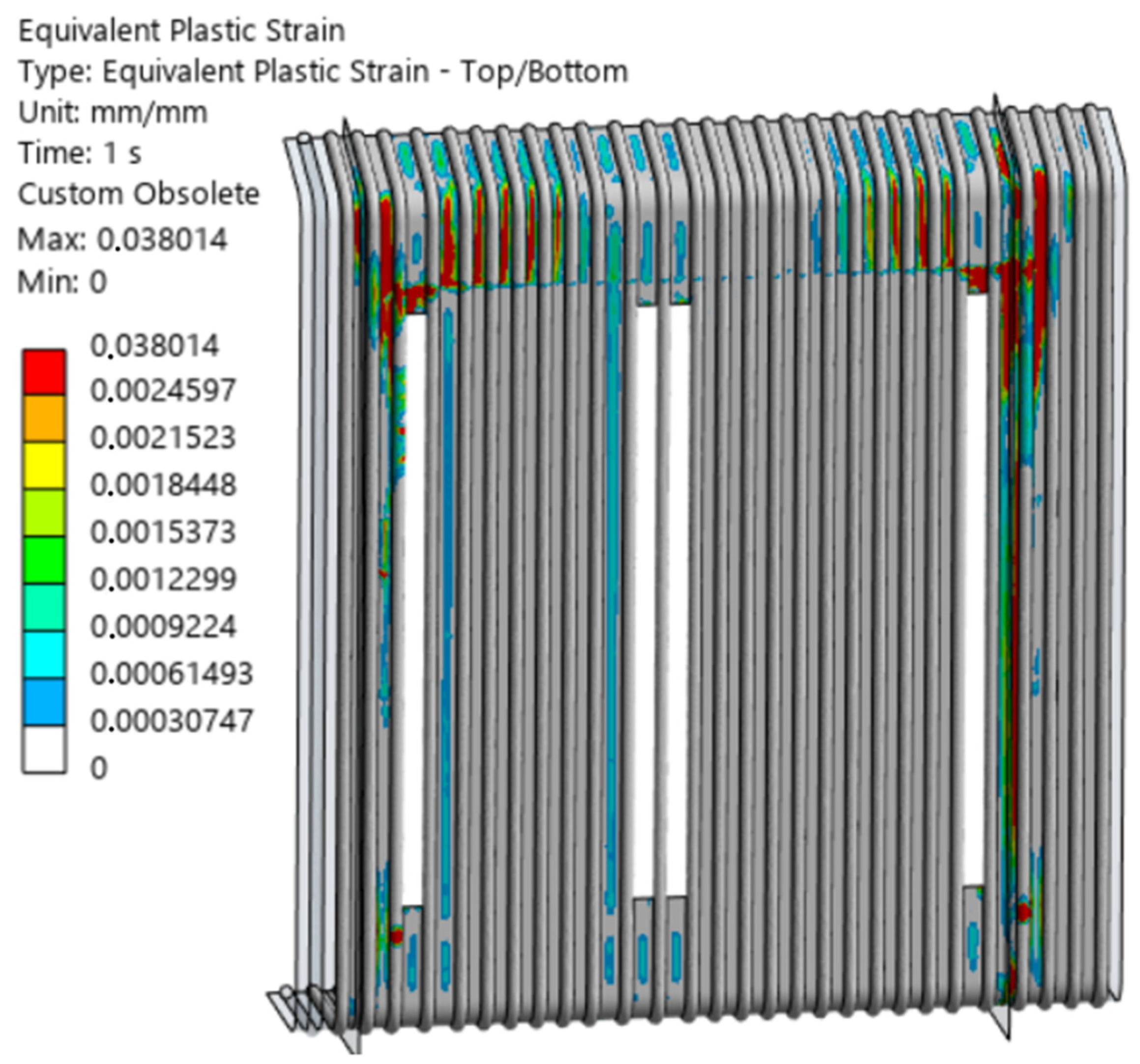 This result is also consistent with on-site observations during boiler operation, where the severity of damage increases with the number of operating cycles. The progressive accumulation of strain means that, even without significant static overload, the structural integrity of the affected region inevitably deteriorates under repeated thermal and mechanical cycling. As a result, the component experiences recurrent failures, ultimately leading to premature end-of-life for the damaged boiler section.