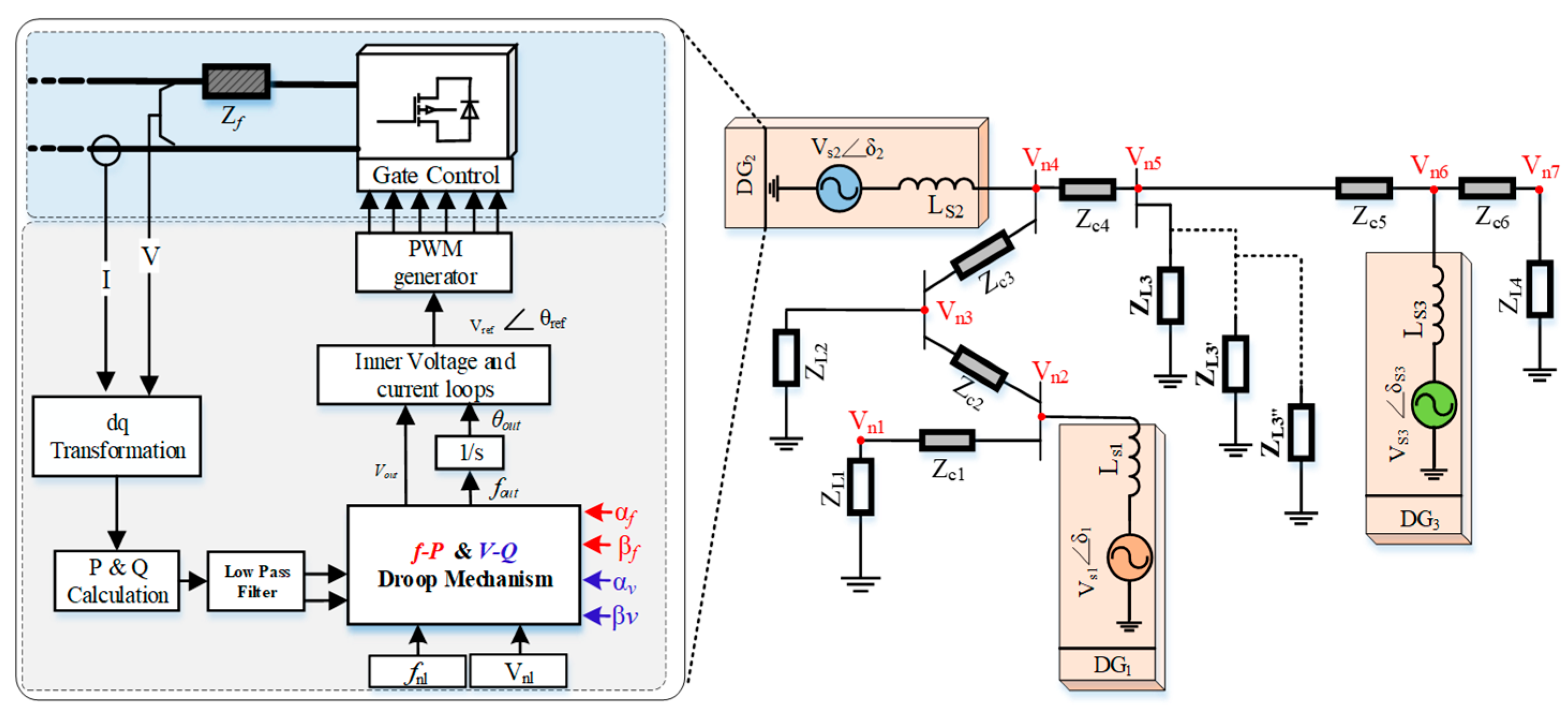 - Harasis, S. Development of a droop control strategy for flexible operation of distributed generators. Jordan J. Electr. Eng. 2022, 8, 179–194. [Google Scholar] [CrossRef]