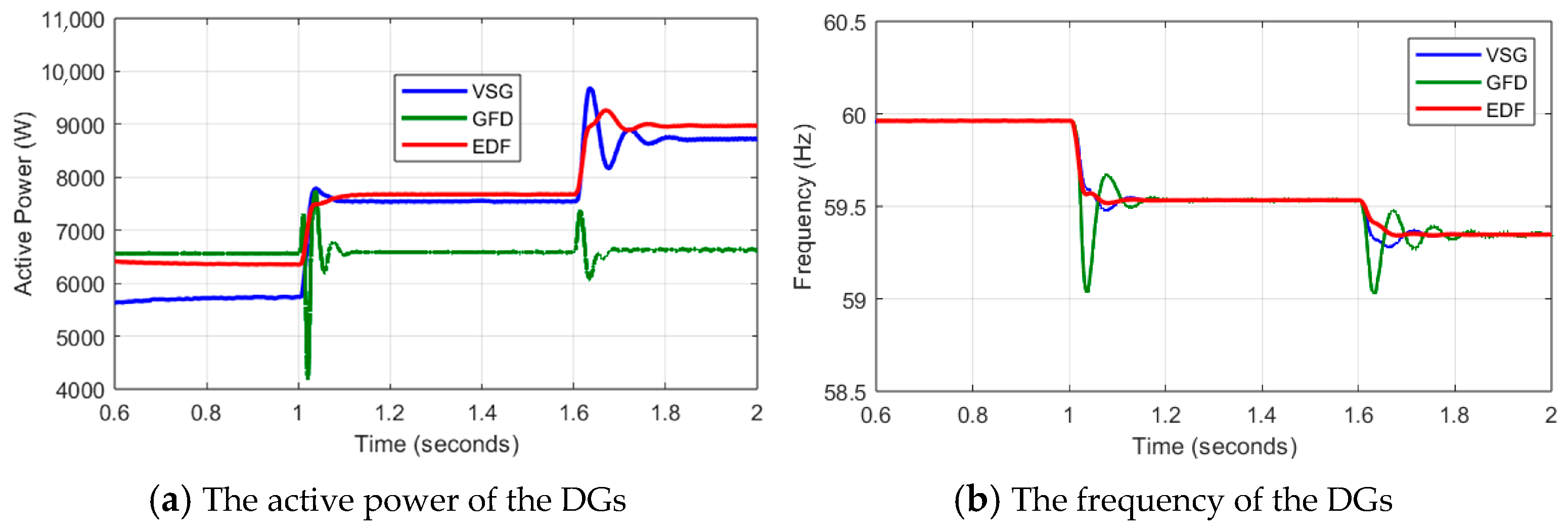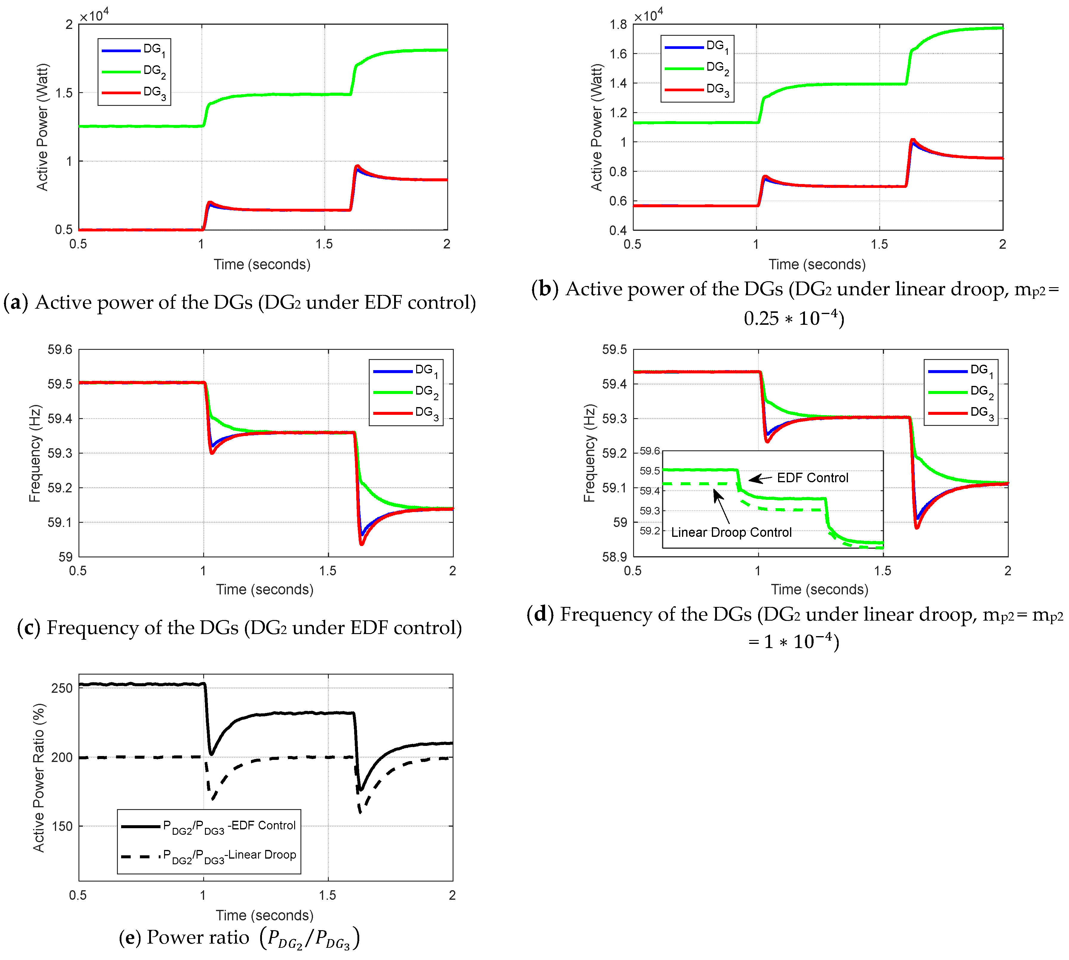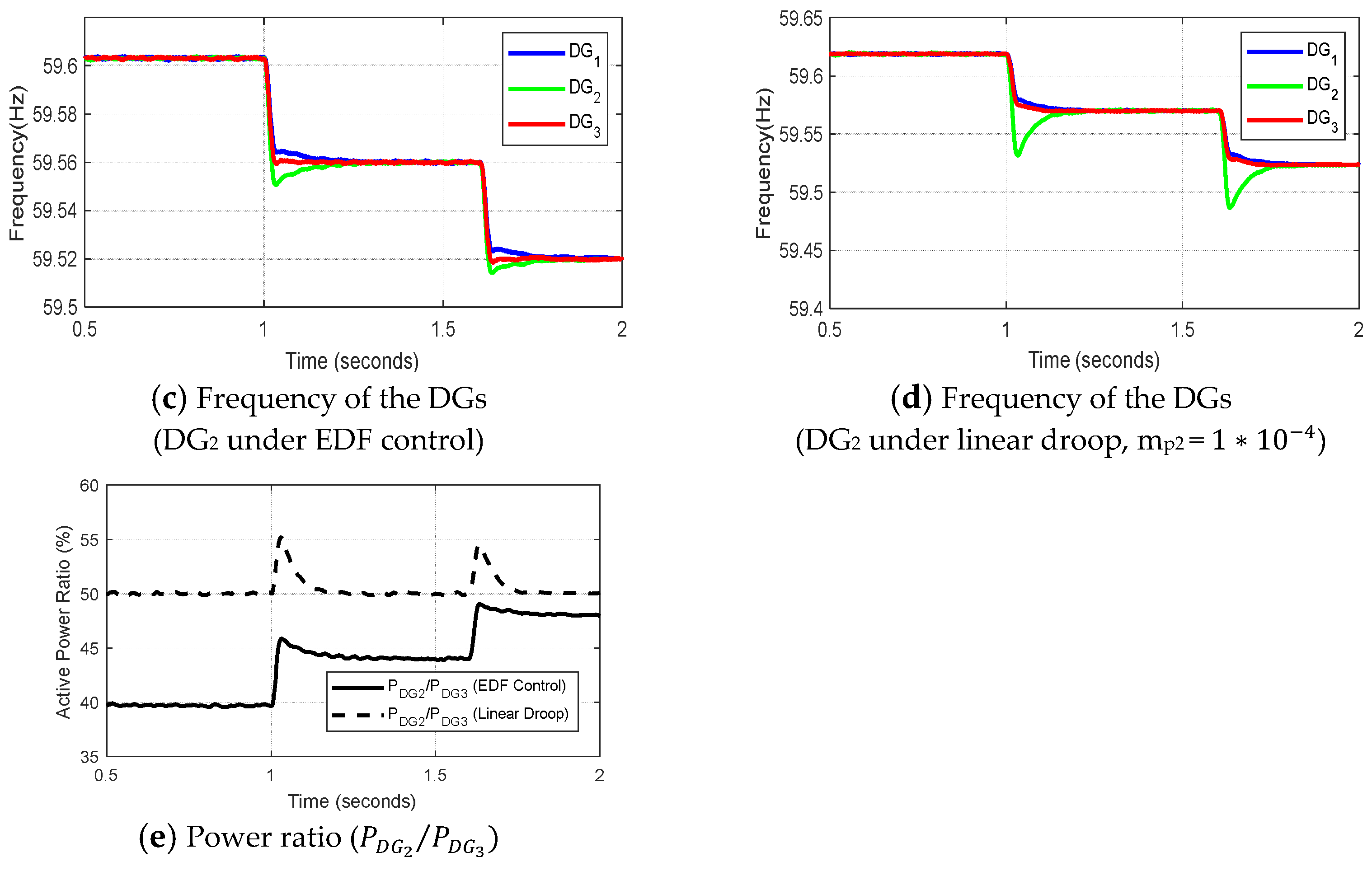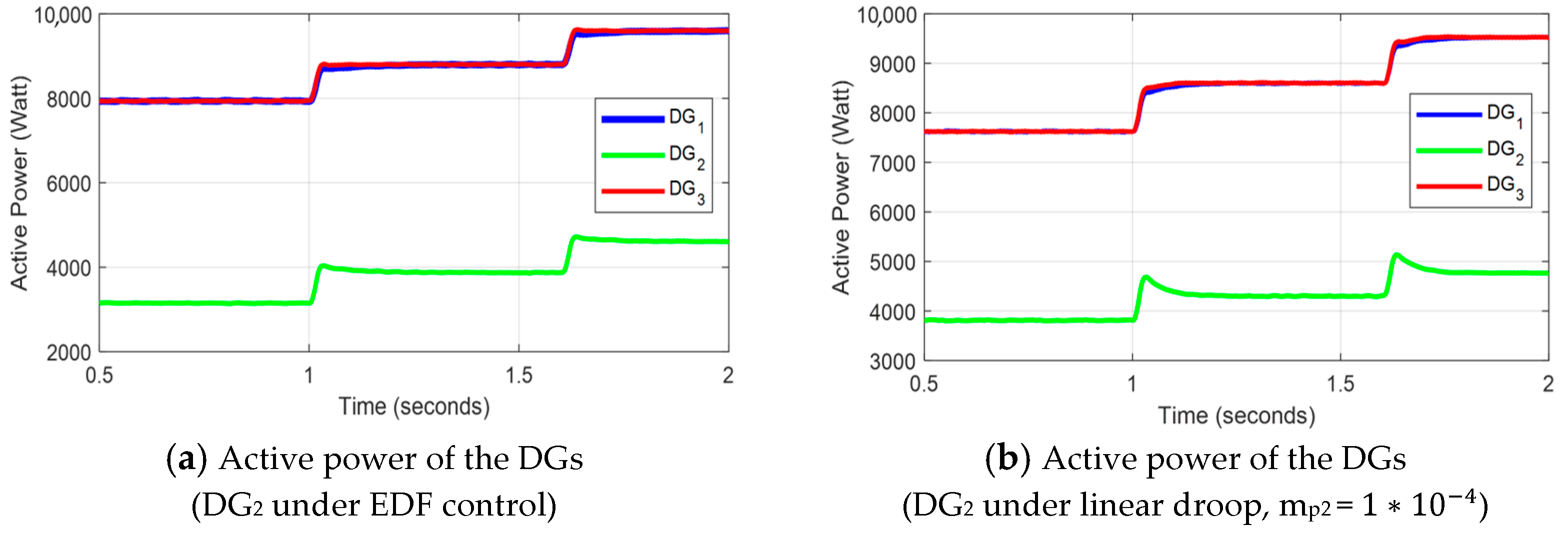 | Case-6 | To demonstrate the impact of all EDF-controlled microgrid on power sharing, dynamics, and stability |