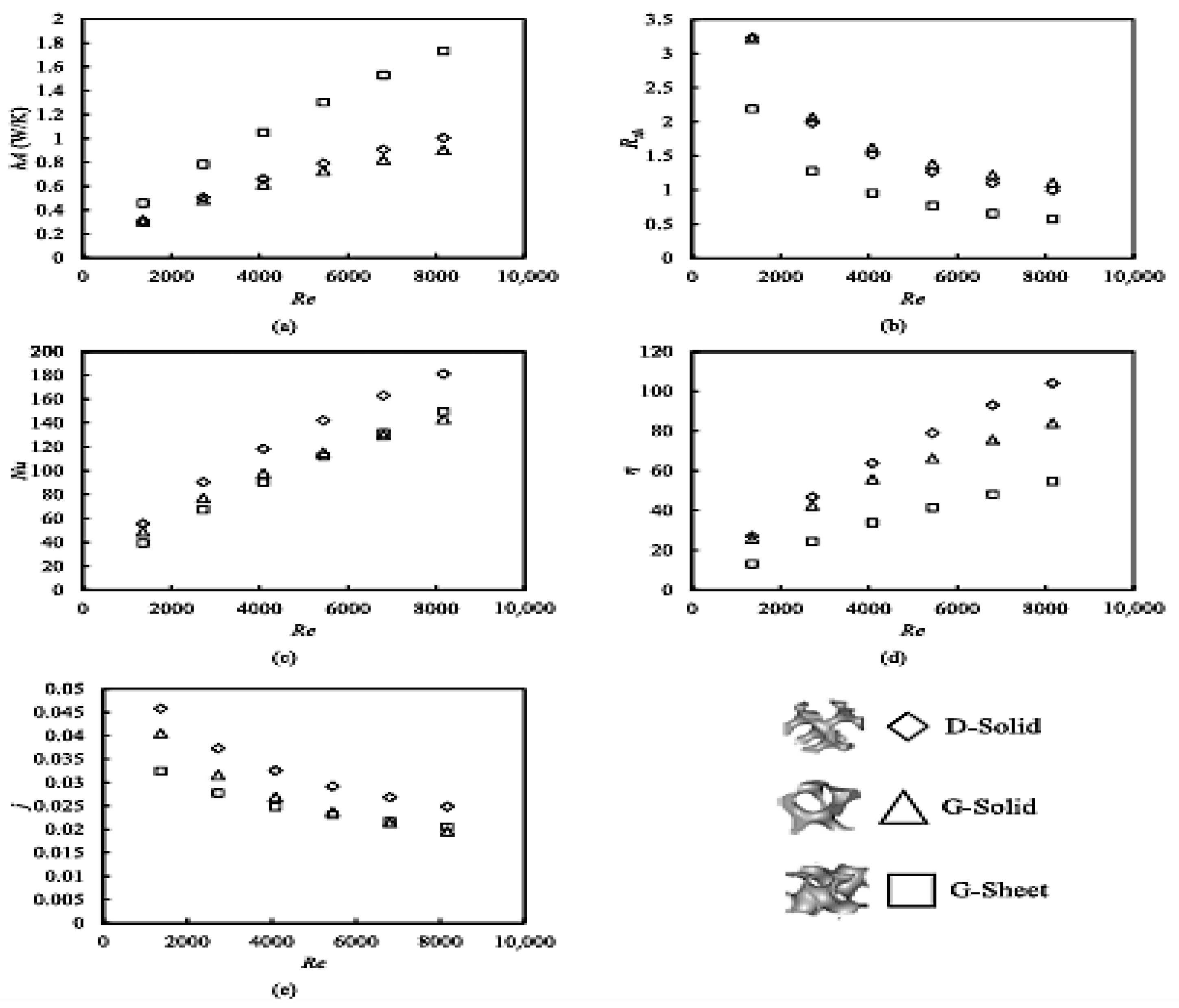 - Geometry: plays a decisive role, as different morphologies present distinct surface-to-volume ratios; for instance, Kerme et al. [5] showed that Diamond-type structures generally achieve higher Nu values than Gyroid designs under identical conditions.