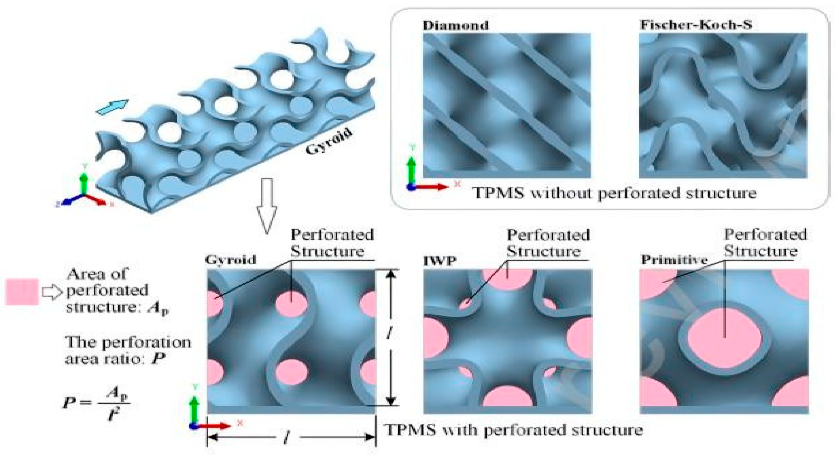 | TPMS & Fins | Heat Exchange ) | Porosity (%) | Hydraulic Diameter (m) | The Perforation Area Ratio, P (%) |