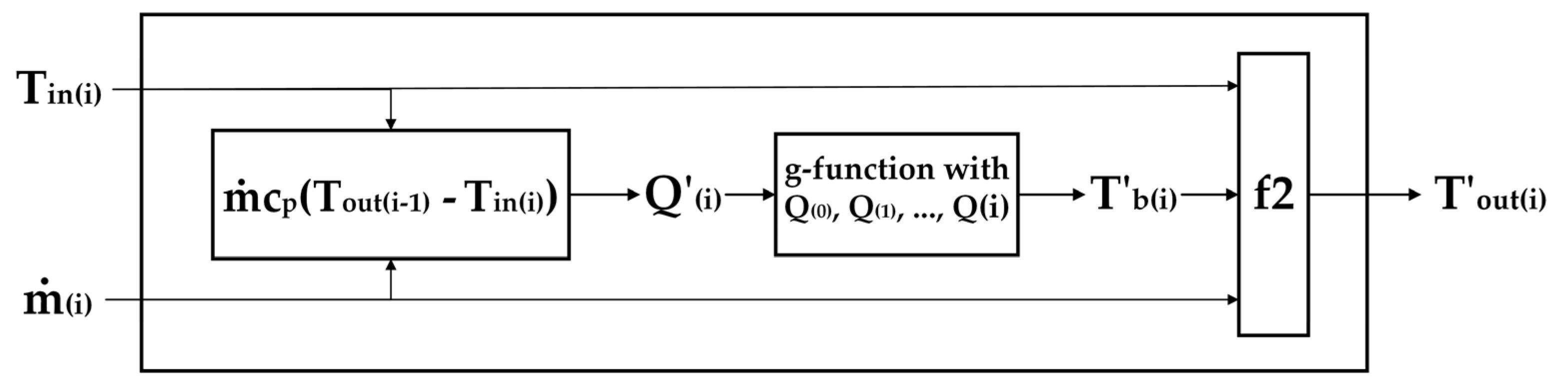 - Spitler, J.; Cook, J. Faster computation of g-functions used for modeling of ground heat exchangers with reduced memory consumption. In Proceedings of the Building Simulation 2021: 17th Conference of IBPSA, Bruges, Belgium, 1–3 September 2021; Volume 17, pp. 2276–2283. [Google Scholar] [CrossRef]
