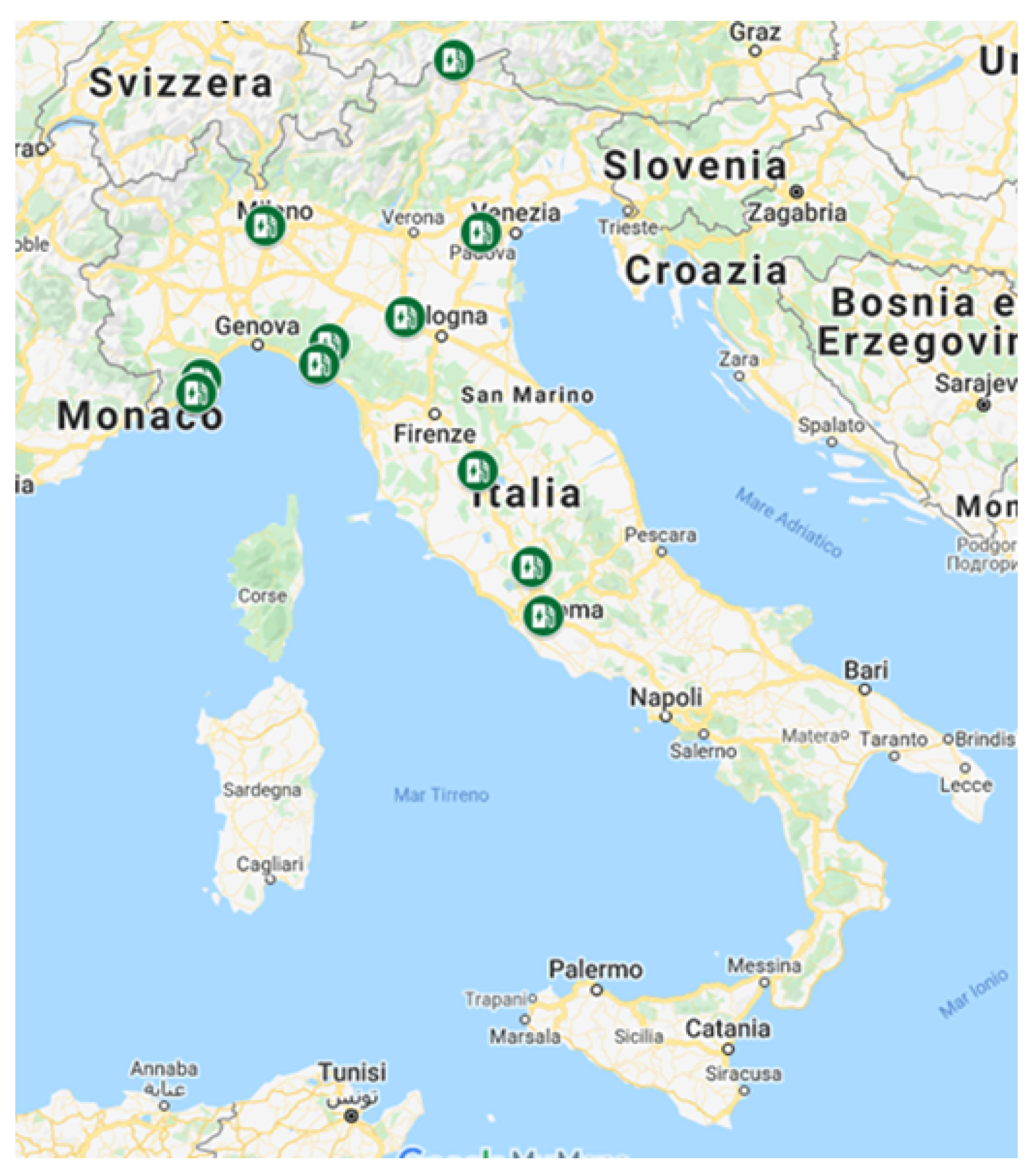 | A7 (Milano–Genova) | A10 (Genova–Ventimiglia) | A16 (Napoli–Canosa) | A12 (Genova–Roma) |