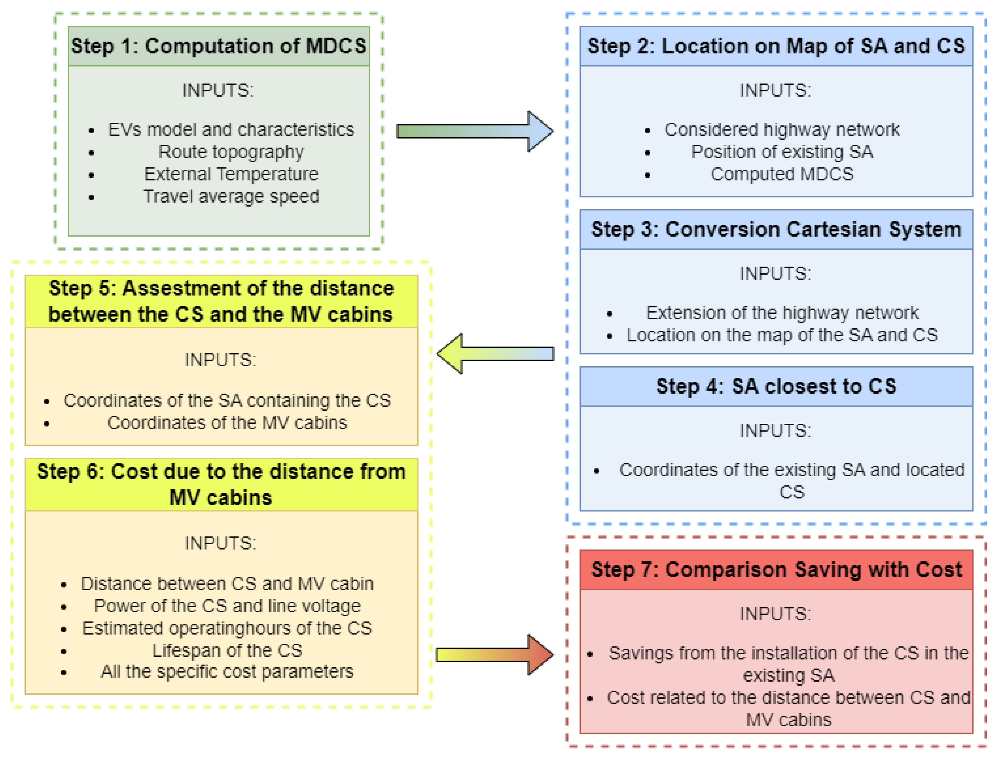 | Algorithm 1 Minimum Distance Between Service Areas and Charging Stations. |