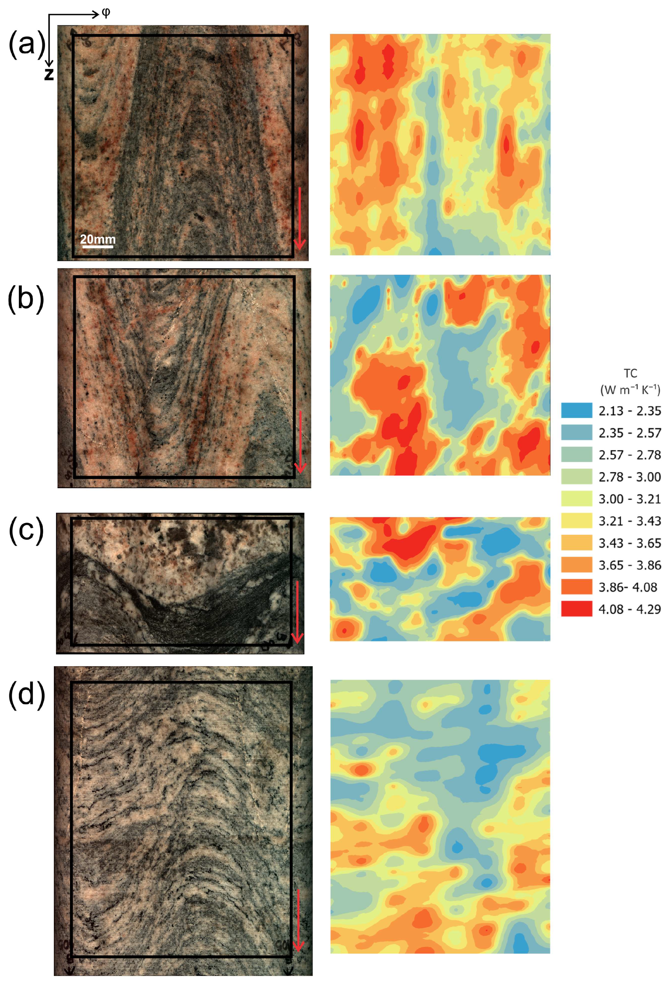 Laboratory Investigation of Heterogeneous Metamorphic Rocks and Their Spatial Distribution of Thermal Conductivity