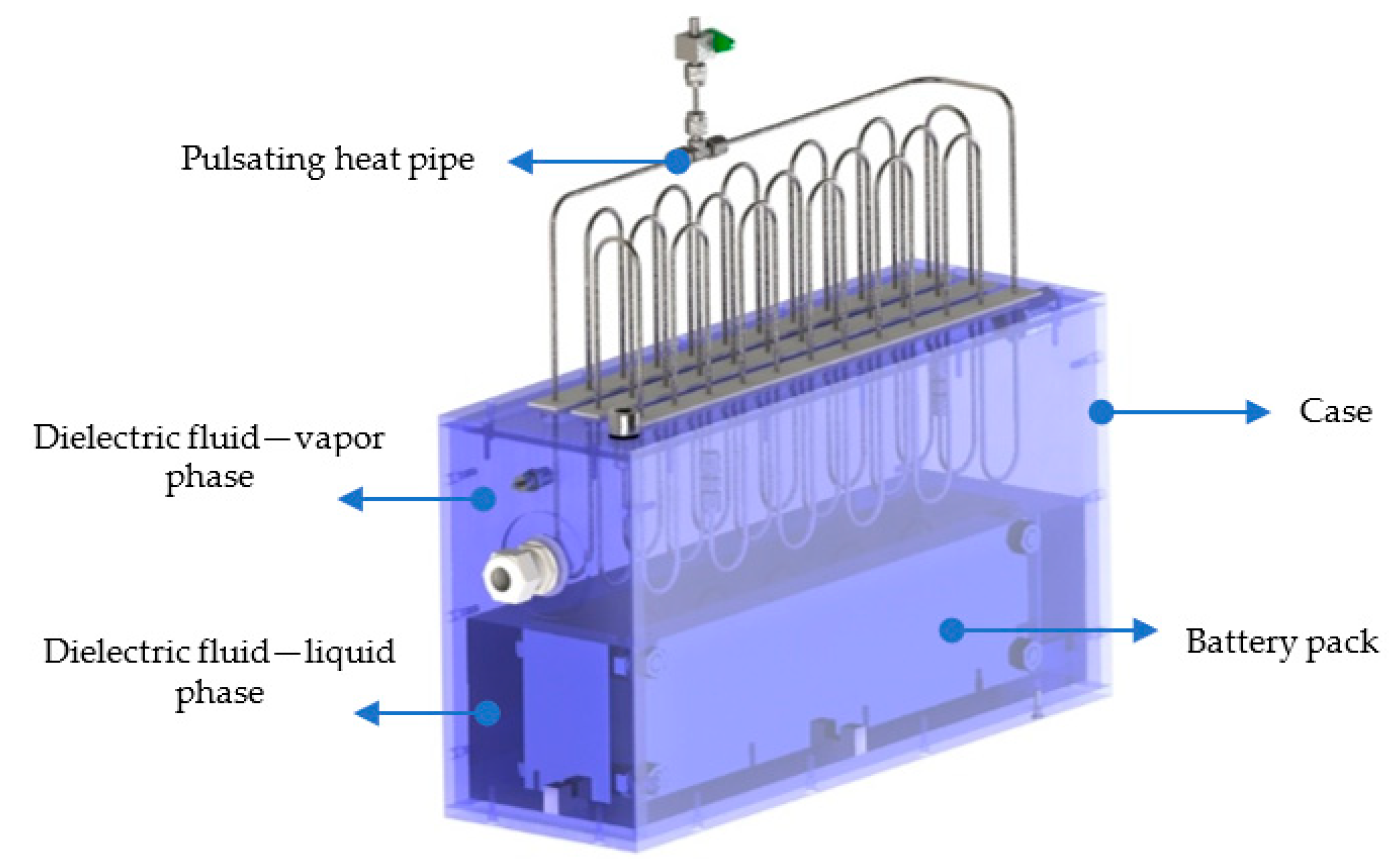 - Lee, J.-S.; Kim, S.-J.; Han, W.-S.; Rhi, S.-H. Anti-Gravity 3D Pulsating Heat Pipe for Cooling Electric Vehicle Batteries. Energies 2024, 17, 2283. [Google Scholar] [CrossRef]