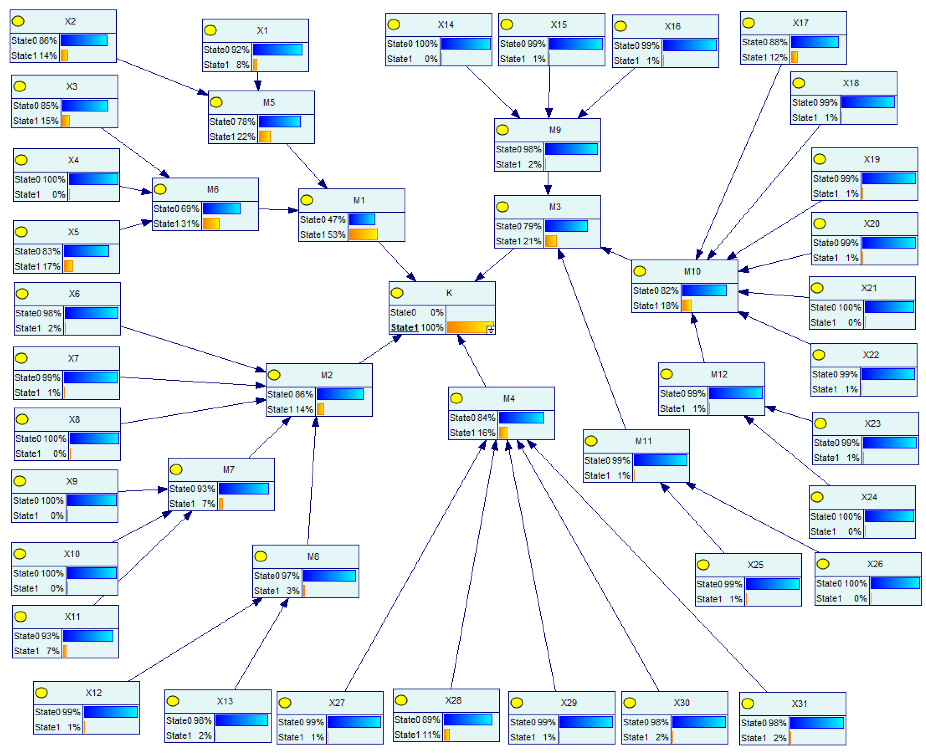 - Khakzd, N.; Khan, F.; Amyotte, P. Safety analysis in process facilities: Comparison of fault tree and Bayesian network approaches. Reliab. Eng. Syst. Saf. 2011, 96, 925–932. [Google Scholar] [CrossRef]
