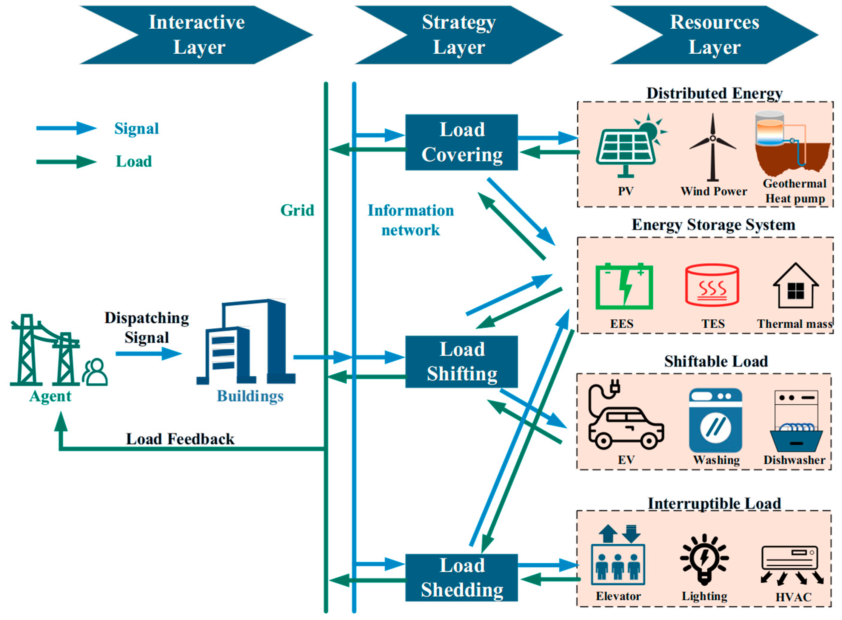 Zhang, L.; Huo, M.; Zhou, T.; Pan, J.; Xu, Y. Energy Flexibility Realization in Grid-Interactive Buildings for Demand Response: State-of-the-Art Review on Strategies, Resources, Control, and KPIs. Energies 2025, 18, 4960. https://doi.org/10.3390/en18184960