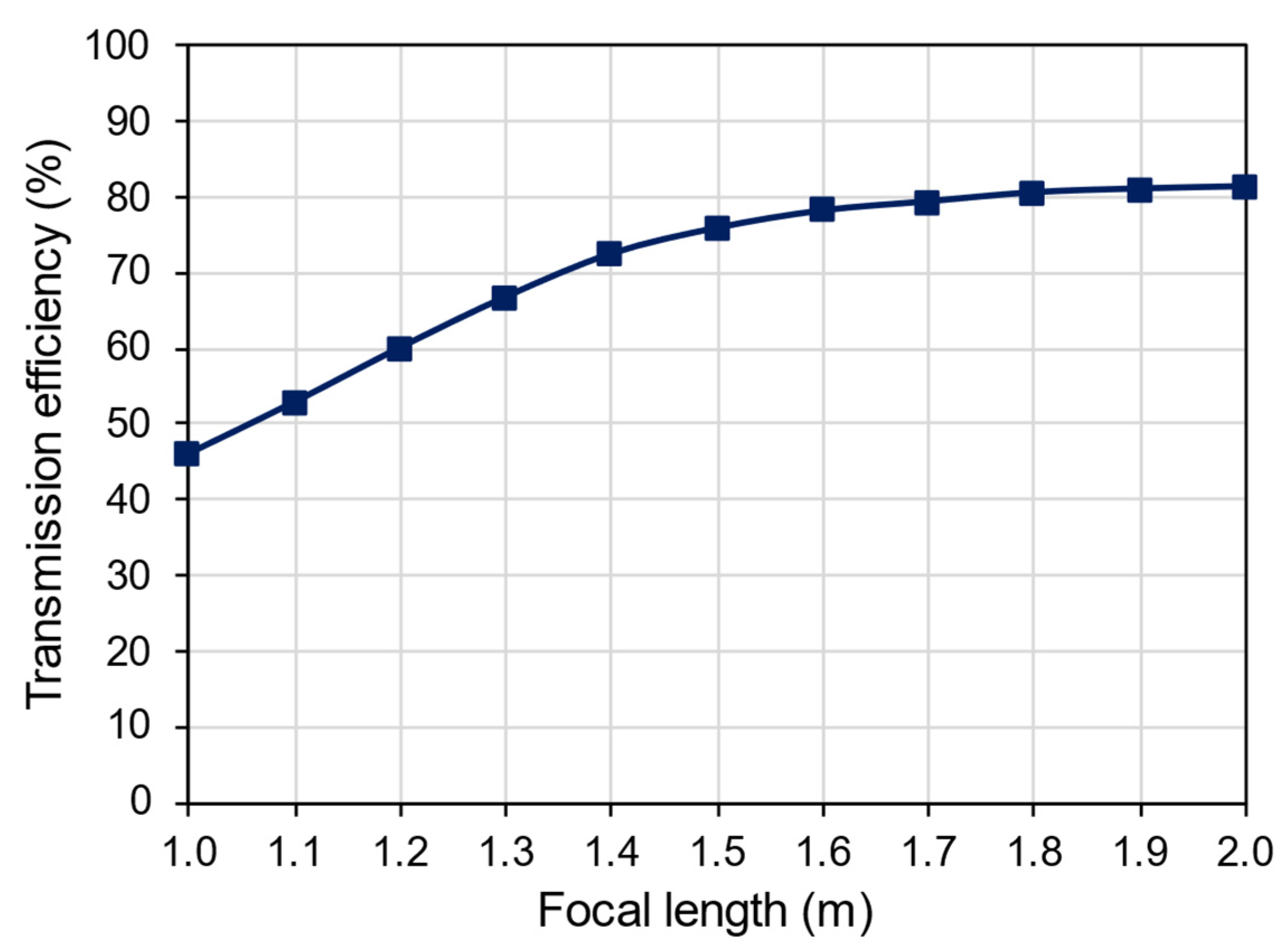 Numerical calculated transmission efficiency (40 mm × 40 mm detector area) | 59.8% | 81.3% | 1.36 times |