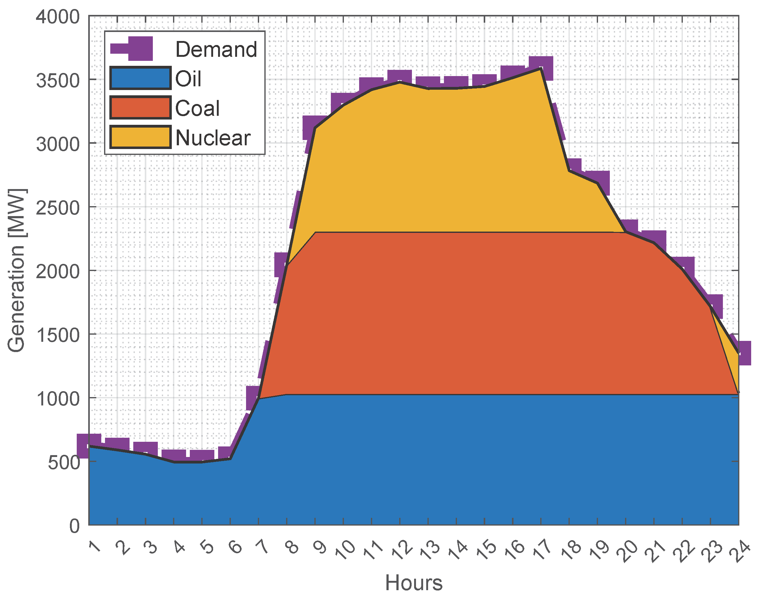 Step 4 | Verification of constraints Generation–demand balance: Technical loss limit: Generation limits: Load shedding: Generator activation: Demand response activation: |