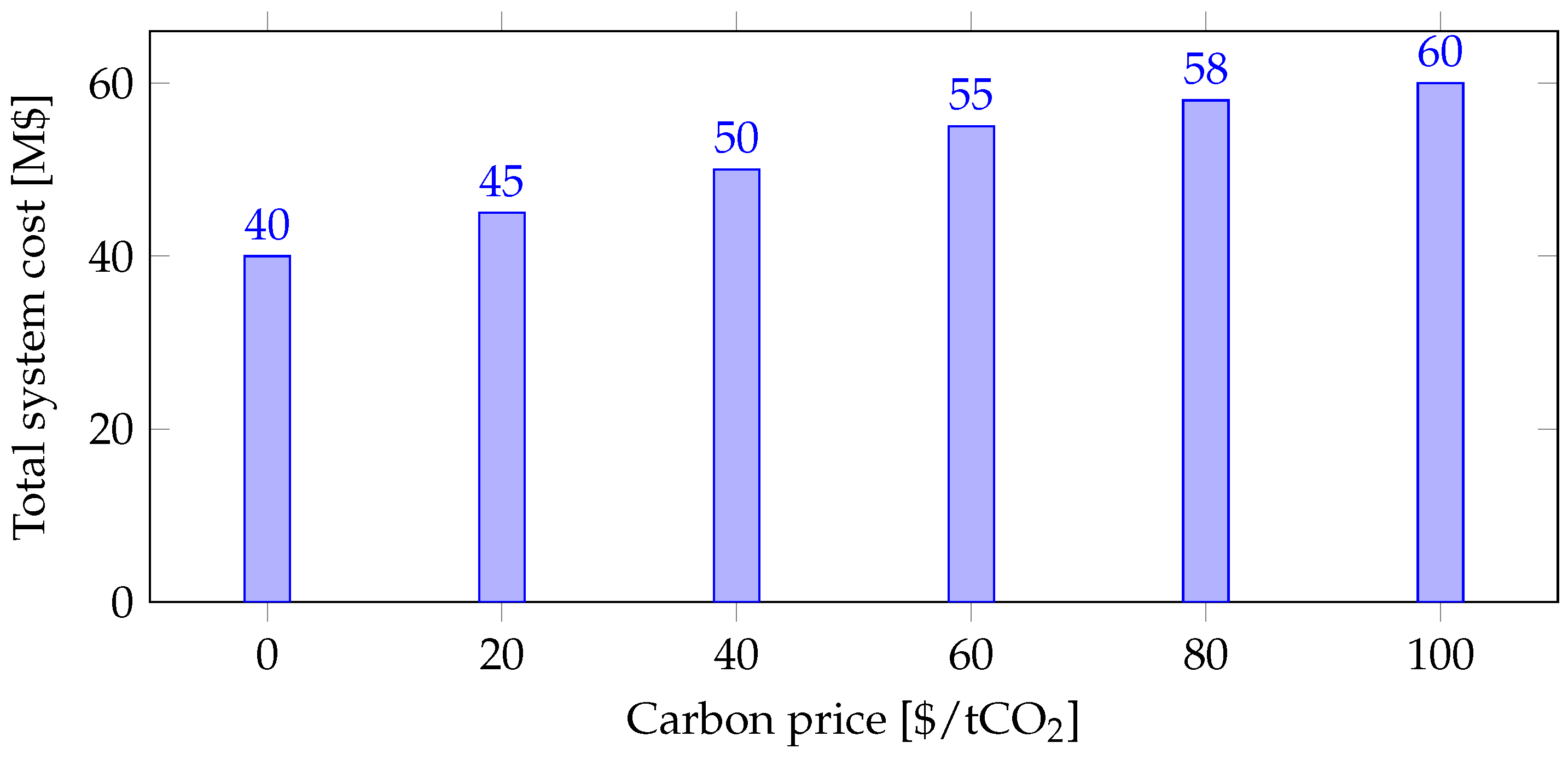Carbon price ($/tCO2) | 0–100+ | Scenario parameter | {0, 25, 50, 100} |