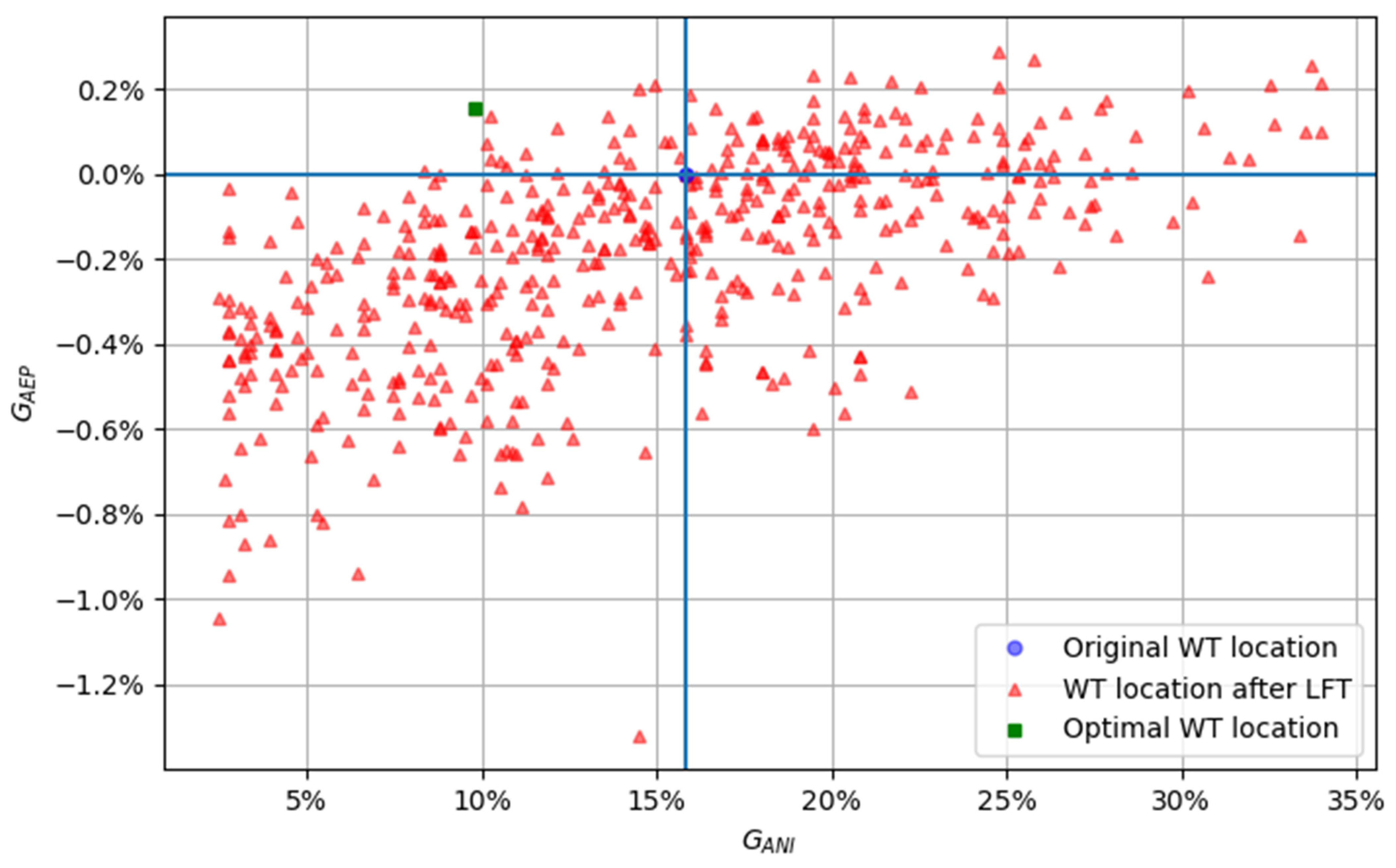 - Thomas, J.J.; Baker, N.F.; Malisani, P.; Quaeghebeur, E.; Sanchez Perez-Moreno, S.; Jasa, J.; Bay, C.; Tilli, F.; Bieniek, D.; Robinson, N.; et al. A comparison of eight optimization methods applied to a wind farm layout optimization problem. Wind Energy Sci. 2023, 8, 865–891. [Google Scholar] [CrossRef]