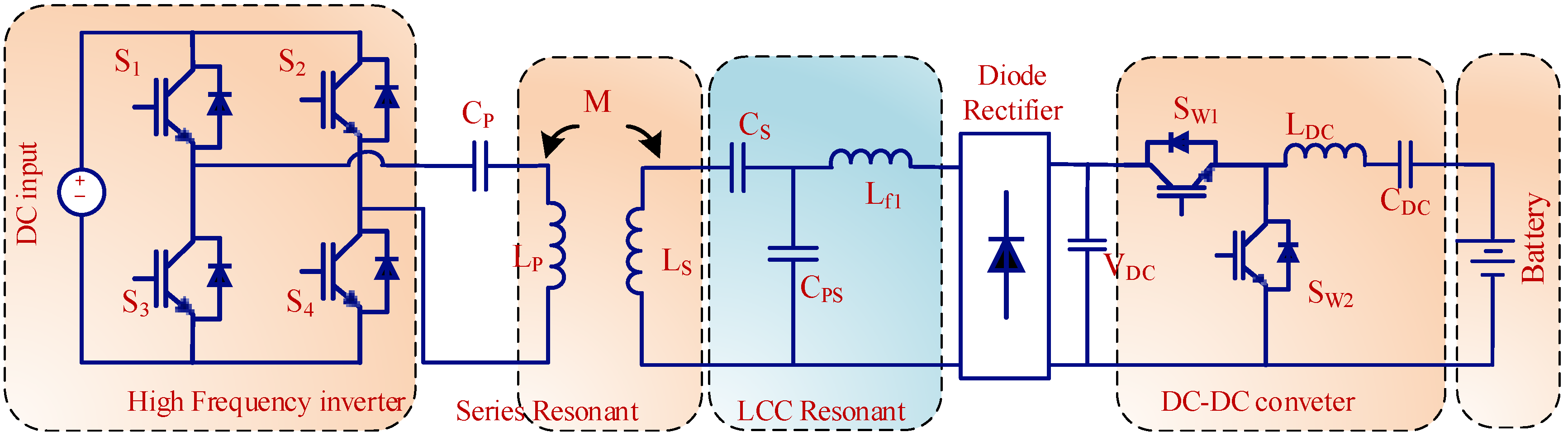 - Song, S.; Zhang, W.; Jin, Z.; Geng, Q. Analysis of S-S Resonance Compensation Circuit of Electric Vehicle Wireless Power Transfer System. In Proceedings of the 2020 IEEE 4th Conference on Energy Internet and Energy System Integration (EI2), Wuhan, China, 30 October–1 November 2020; pp. 619–622. [Google Scholar] [CrossRef]