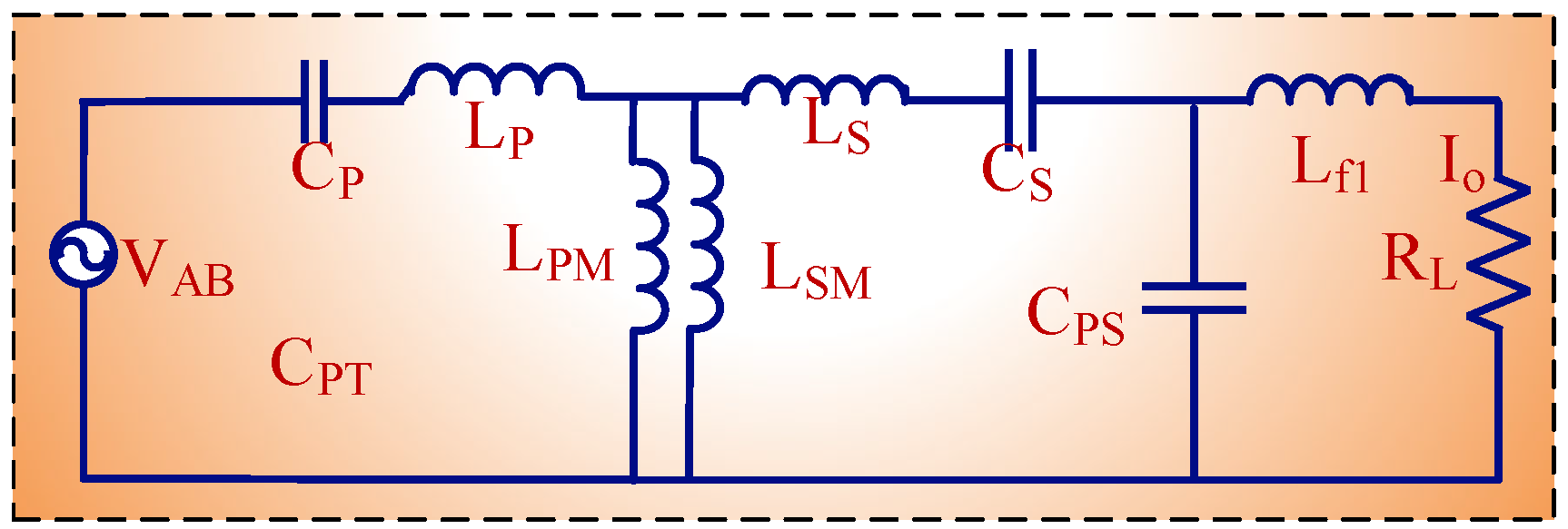 - Liu, Z.; Tao, C.; Wang, L.; Zhang, Y.; Li, F. A Research on Characteristics of Wireless Power Transfer System Based on LCC/N Magnetic Integration Compensation Circuit. In Proceedings of the 2021 IEEE PELS Workshop on Emerging Technologies: Wireless Power Transfer (WoW), San Diego, CA, USA, 1–4 June 2021; pp. 1–5. [Google Scholar] [CrossRef]