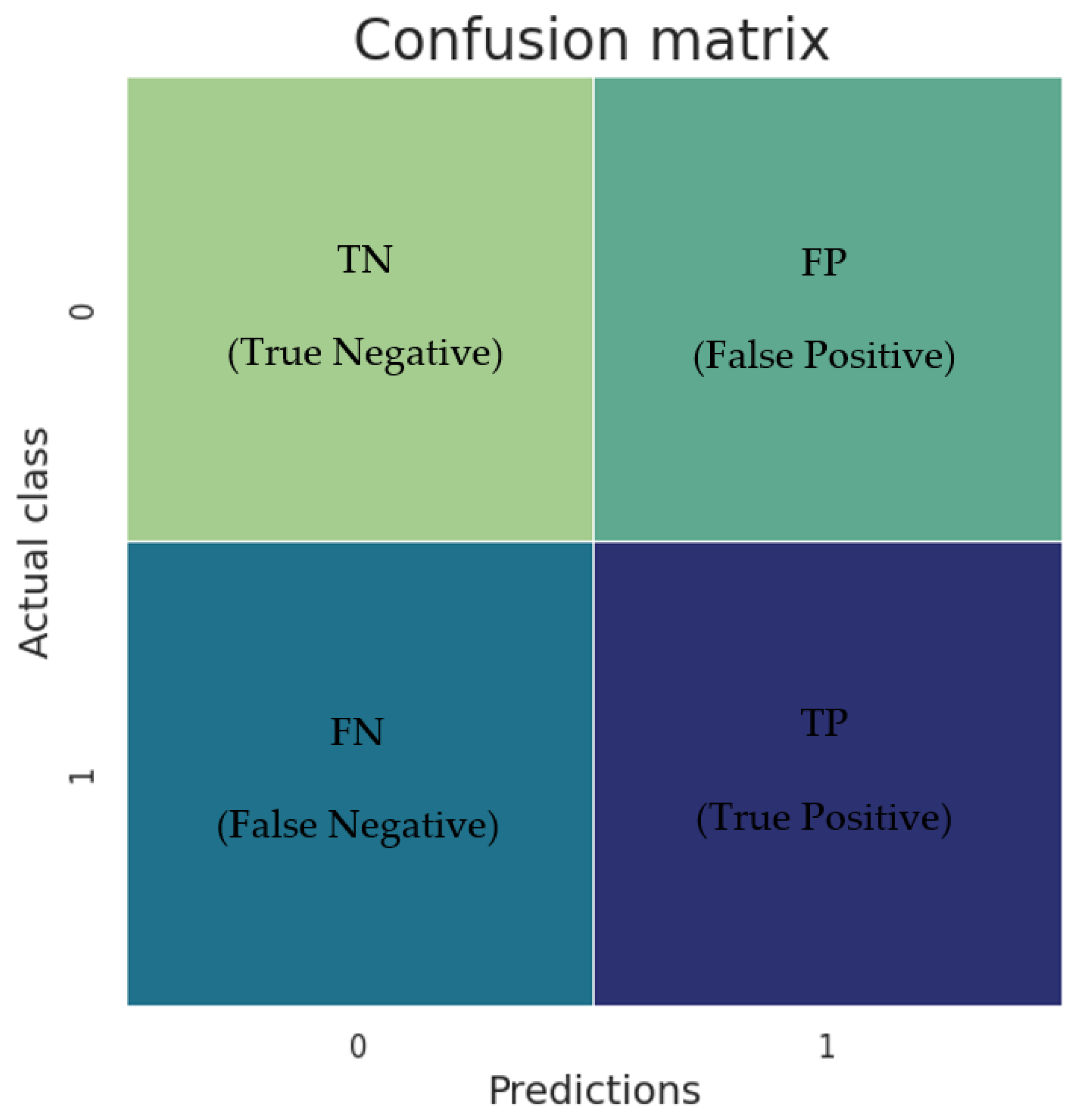 - Precision—proportion of true positive predictions among all positive predictions of the model: