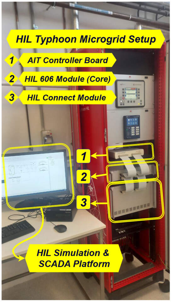 Testing process using real-time setup; (a) testing model using the proposed controller in HIL environment, (b) HIL simulation and corresponding SCADA platform.