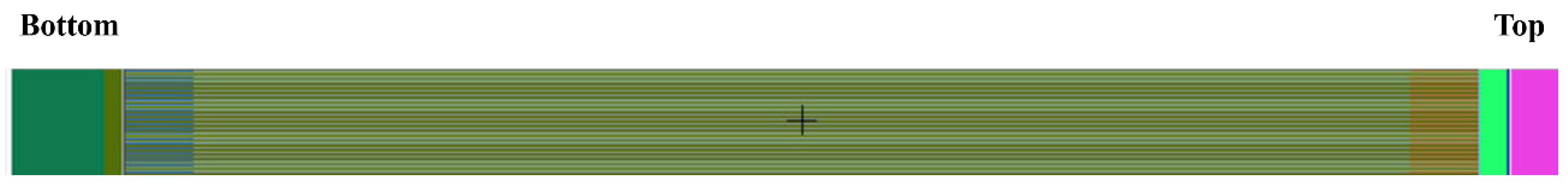 For the generation of radial reflector cross-sections for Hanbit Unit 3, a 2D core model, as shown in Figure 8, was considered in the same manner as with DeCART2D, and the DFs were obtained via SENM nodal calculations. In this model, the spacer grid smeared into the coolant, the baffle was explicitly considered, and the barrel was omitted. In the generation of axial reflector cross-sections, a 1D simplified axial model, as shown in Figure 9, was developed, and DFs were similarly generated.