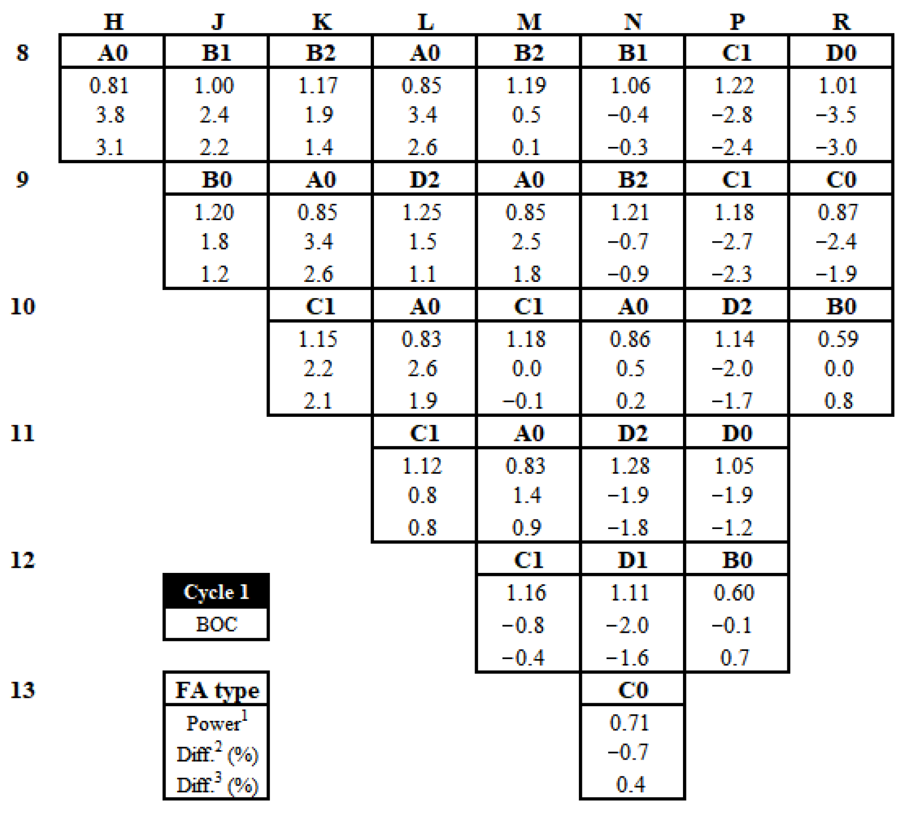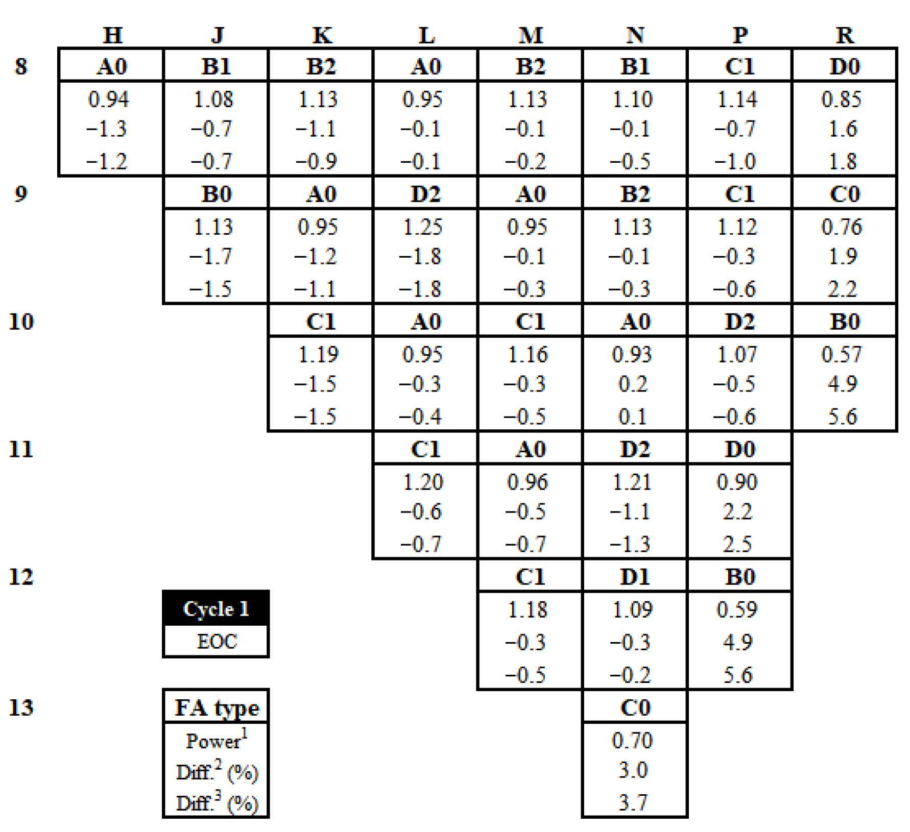 Table 1. Specifications of the FAs during cycles 1 and 2.